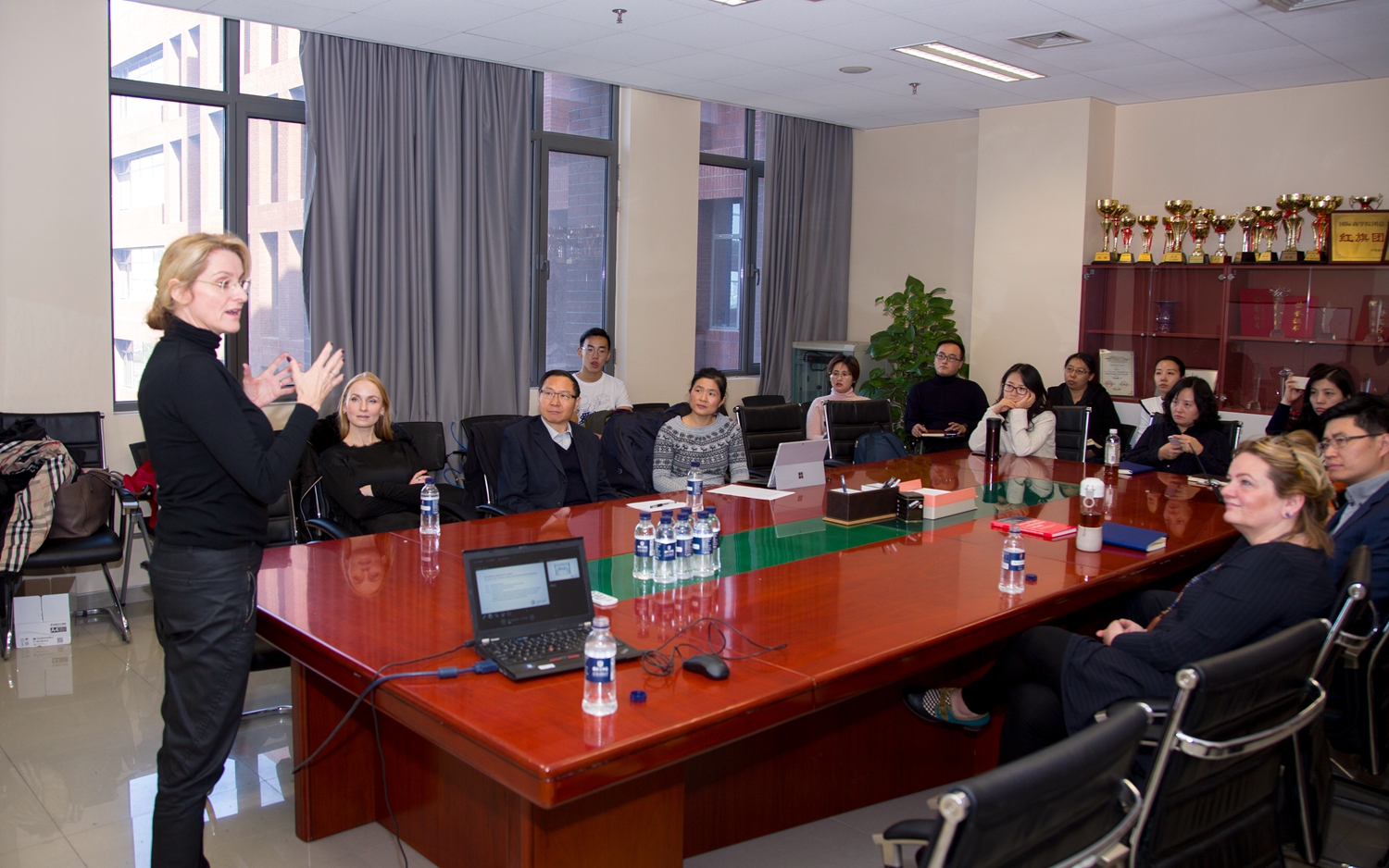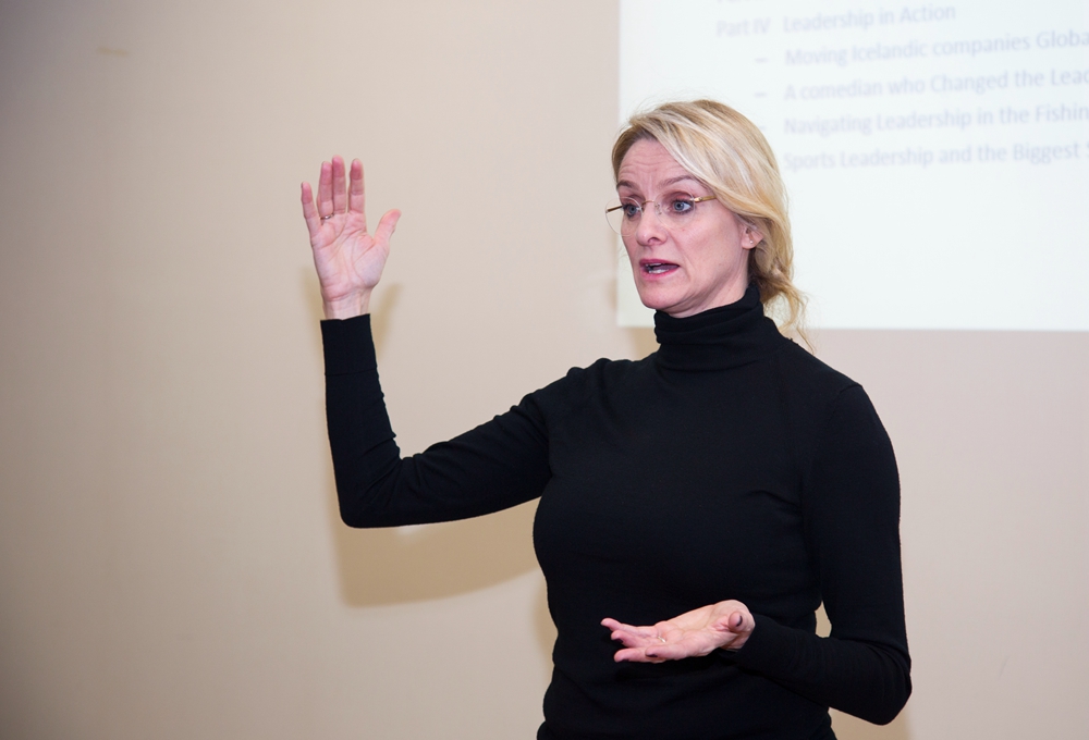 来自冰岛大学商学院的Svala Guðmundsdóttir等三位专家为大家介绍了《冰岛独特的企业管理》(Demystifying Leadership in Iceland)一书中的重点内容,领导力与文化、变革型领导、行动中的领导力等。 随后与会老师纷纷提出相关问题,并就冰岛与中国领导力的不同特点展开讨论。冰岛大学的专家还热情地介绍了冰岛的历史、社会经济状况、风土人情等。