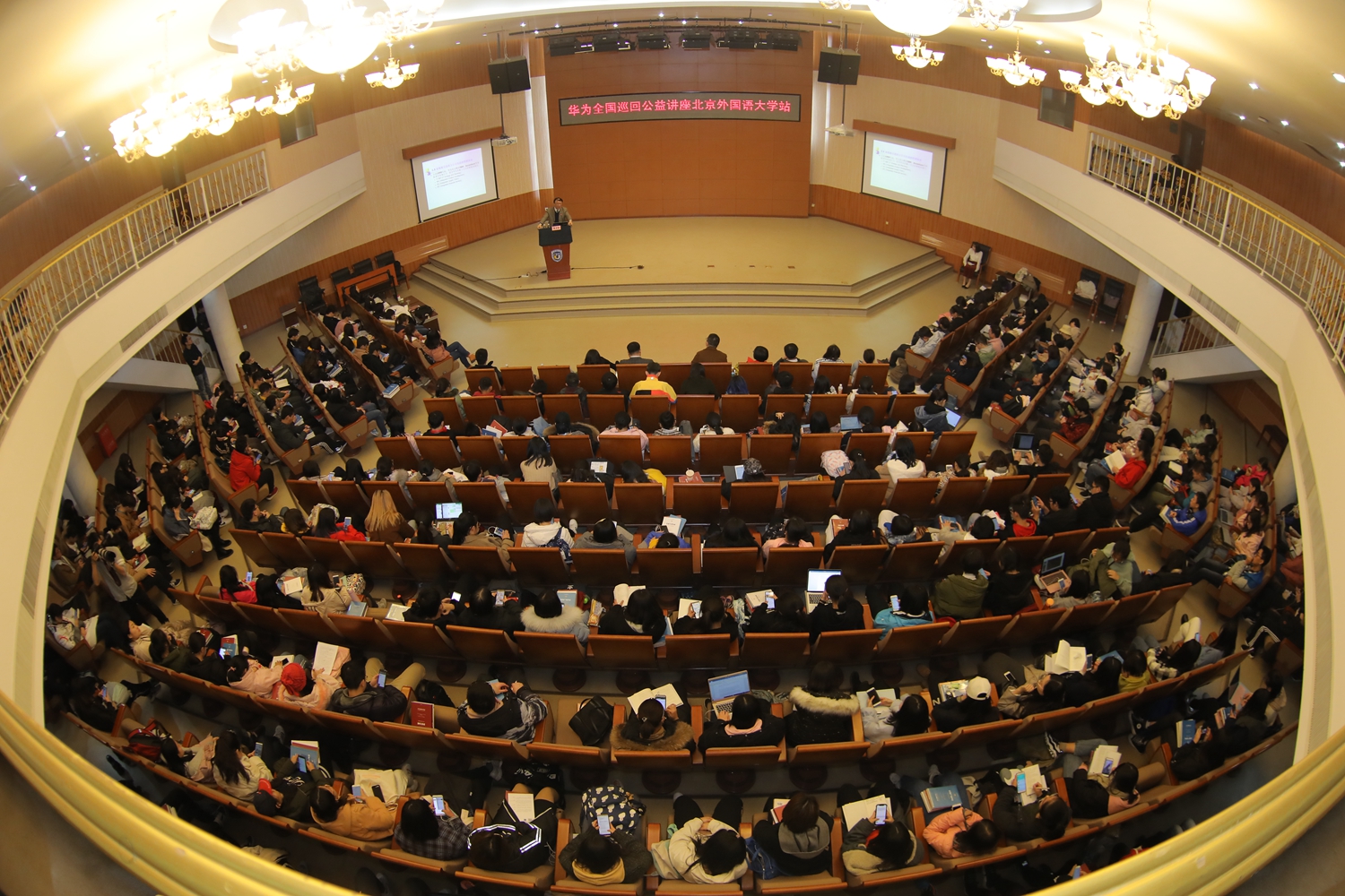 11月29日17:30,华为全国巡回公益讲座北京外国语大学站在北京外国语大学阿语楼国会厅举办。本次讲座由华为公司高级管理顾问、中国人民大学商学院教授黄卫伟博士主讲,北京外国语大学国际商学院负责协助举办。华为公司嘉宾,北京外国语大学教师代表及三百余名学生参加本次讲座。