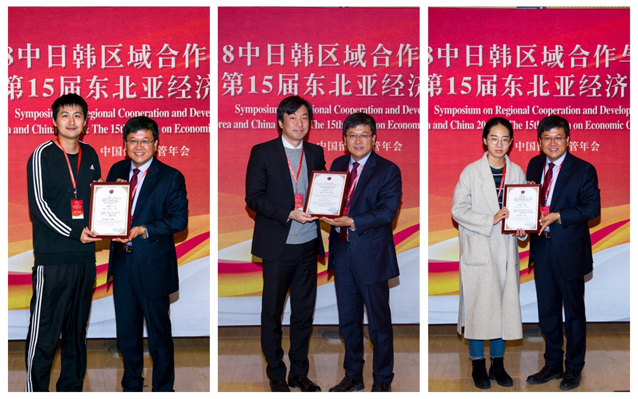 (牛华勇为优秀论文获得者王方、KIM Jong Heuk、张晨希颁发获奖证书)