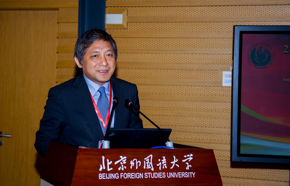 北京外国语大学校长彭龙参加开幕式并致辞,他表示:今天,中日韩三国占到世界人口总量的22%,全球GDP的20%,亚洲GDP的70%,以及全球对外贸易总额和对外投资总额的20%。可以说,作为一个整体的中日韩三国已足以对整个世界经济产生重大影响。按照目前的发展势头,以中日韩为代表的东亚地区未来将会进一步提升自身在国际经济舞台上的地位和话语权,但这一切都有赖于中日韩三国间的高度互信与合作。当前,东亚地区虽然还存在着不少的问题,但也迎来了多年来未曾有过的较为积极的局面。今年4月,朝韩领导人实现了历史上的第三次首脑会晤,朝鲜半岛局势持续缓和,正在朝着可喜的方向发展。而就在刚刚过去的10月25日,日本首相安倍晋三也对中国进行了正式访问,这是日本领导人时隔七年再次访华,对中日关系的改善无疑具有重要意义。因此,选择在这样一个时间点、在北外举办此次“中日韩区域合作与发展论坛”可谓恰逢其时。