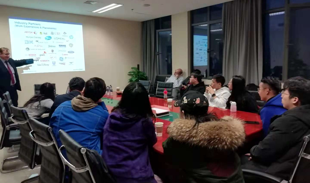 Martin表达了与北外商学院深入合作的意愿。双方继续推进了经济管理国际项目2+2的合作,并探讨了双硕士、语言中心培训、教师合作研究中心等项目的可能性,双方有意向在接下来的时间里深入合作,覆盖更多领域。另外,Martin院长还为北外商学院在读学生详细介绍了肯特大学商学院的基本情况、课程设置和毕业生就业情况。