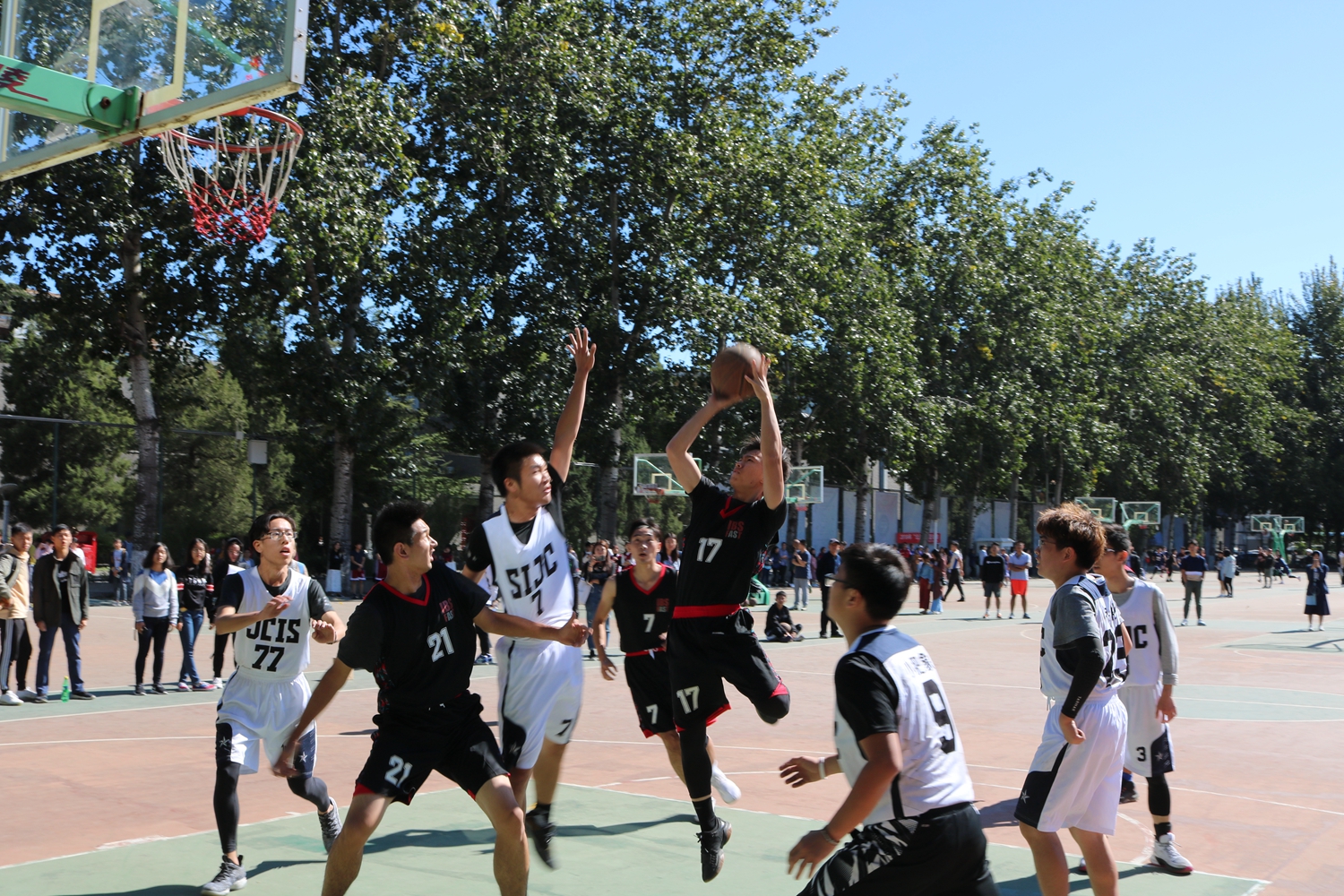 10月8日12:30,北京外国语大学国际商学院男子篮球队与国际新闻与传播学院男子篮球队于操场进行“北外杯”篮球赛小组赛的比拼,国商男篮以50:19的成绩获胜。