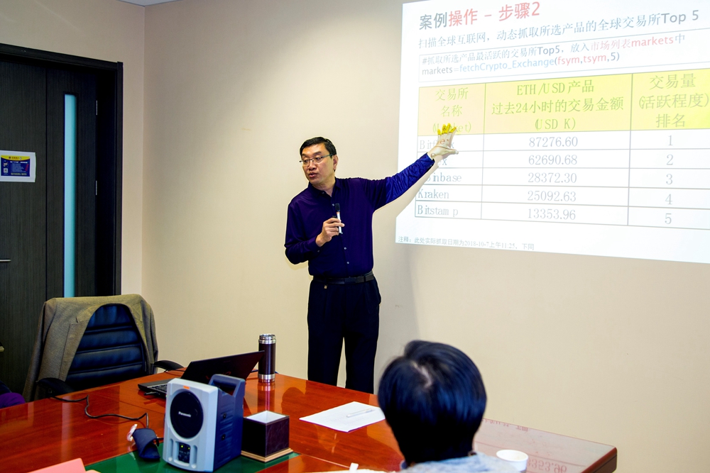 王德宏详细介绍了开发课堂教学案例的背景、课堂教学案例制作的心得、案例选题如何吸引学生、案例设计、案例使用步骤等等内容。分享期间,与会老师纷纷提出各种相关问题、发表自己的意见和建议,并展开热烈的讨论。分享会结束后,各位老师意犹未尽,强烈要求王老师再进行一次关于数字货币交易策略的专题讲座。