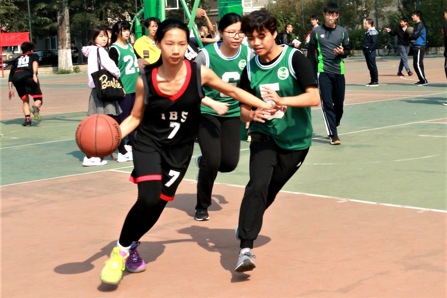 10月12日12:30,北京外国语大学国际商学院女子篮球队与阿拉伯学院女子篮球队于操场进行“北外杯”篮球赛最后一场小组赛的比拼。