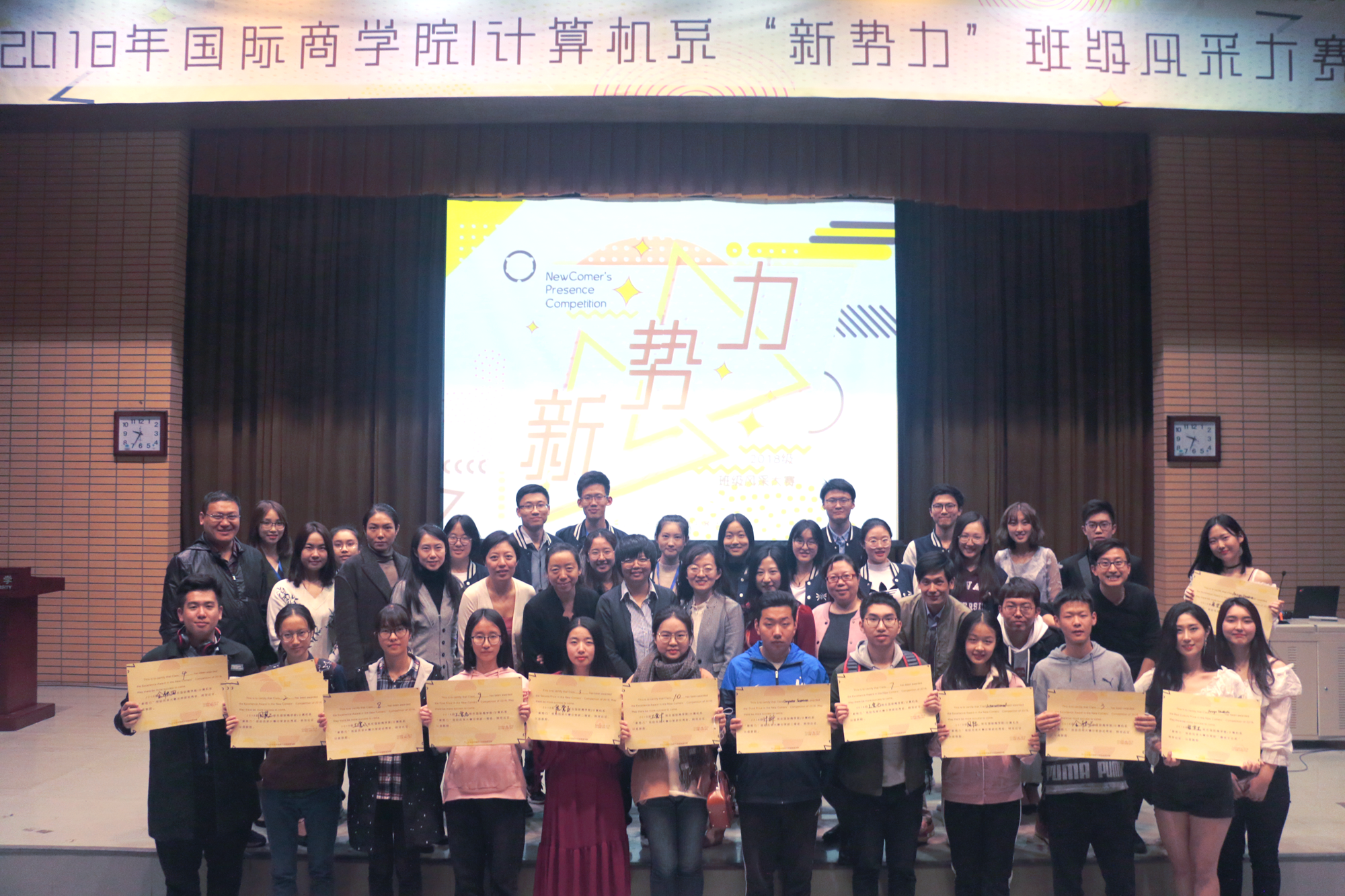 10月19日18:30,国际商学院及计算机系2018年“新势力”班级风采大赛在逸夫楼第三阶梯教室举行。国际商学院副院长宋泽宁,计算机系直属党支部书记梁野,院长助理裴艳丽、崔校宁,各办公室主任、各班主任、辅导员与2018级国际商学院及计算机系全体新生出席。