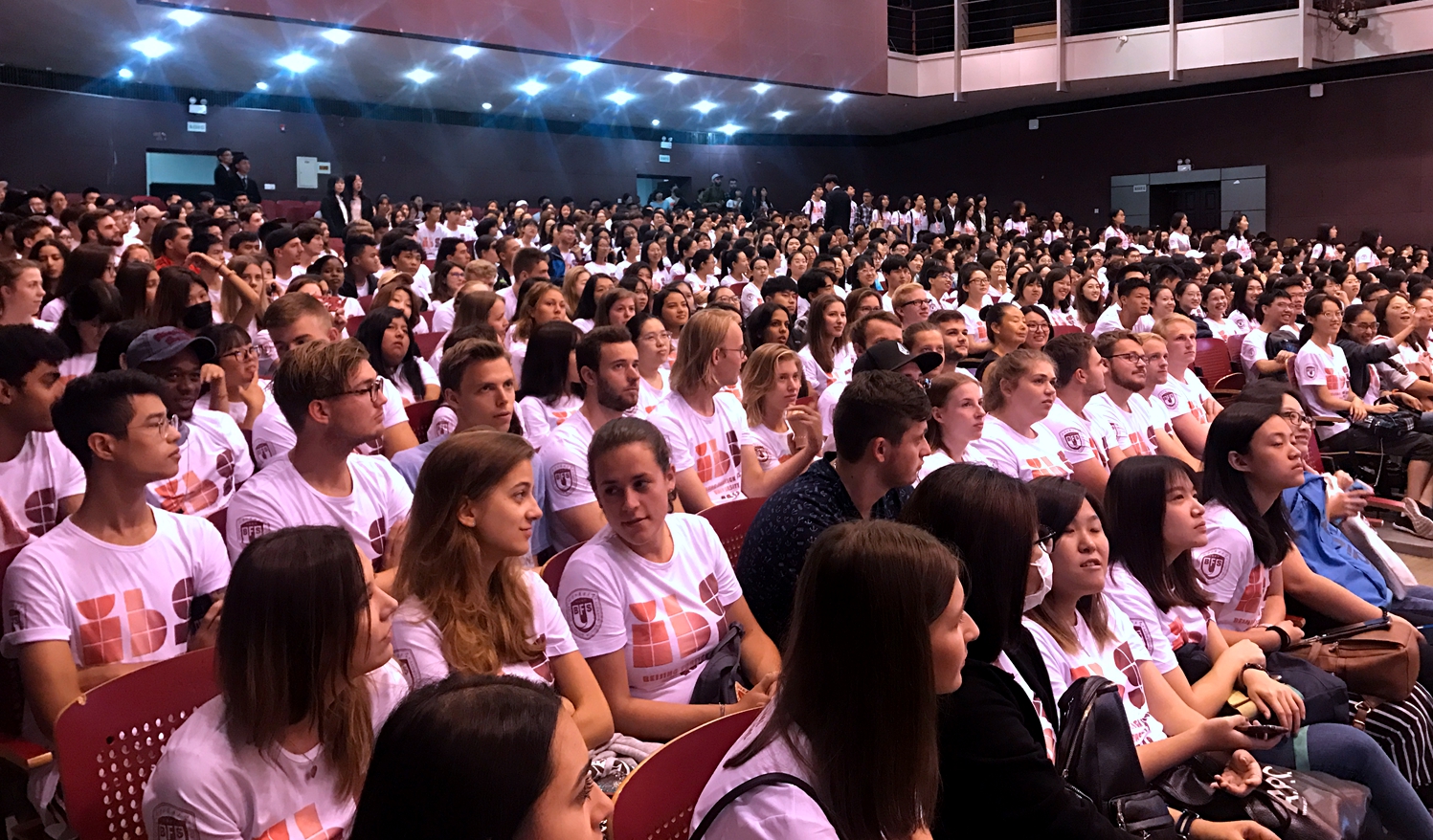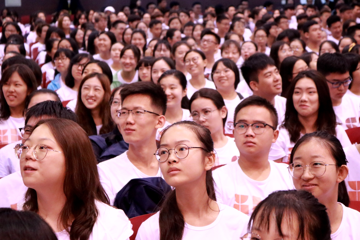 在观看了历届学生制作的毕业视频和国商宣传片后,牛华勇首先发表致辞表达对新生的热烈欢迎,随后从中国如今面临的经济形势与发展阶段及特点等角度,向新生阐释国商打造“多语种、跨文化、多区域全球化商学院”的愿景与“以坚持开放心态融入全球大潮”的价值观,鼓励新生在大学培养判断、学习能力和锲而不舍的企业家精神。