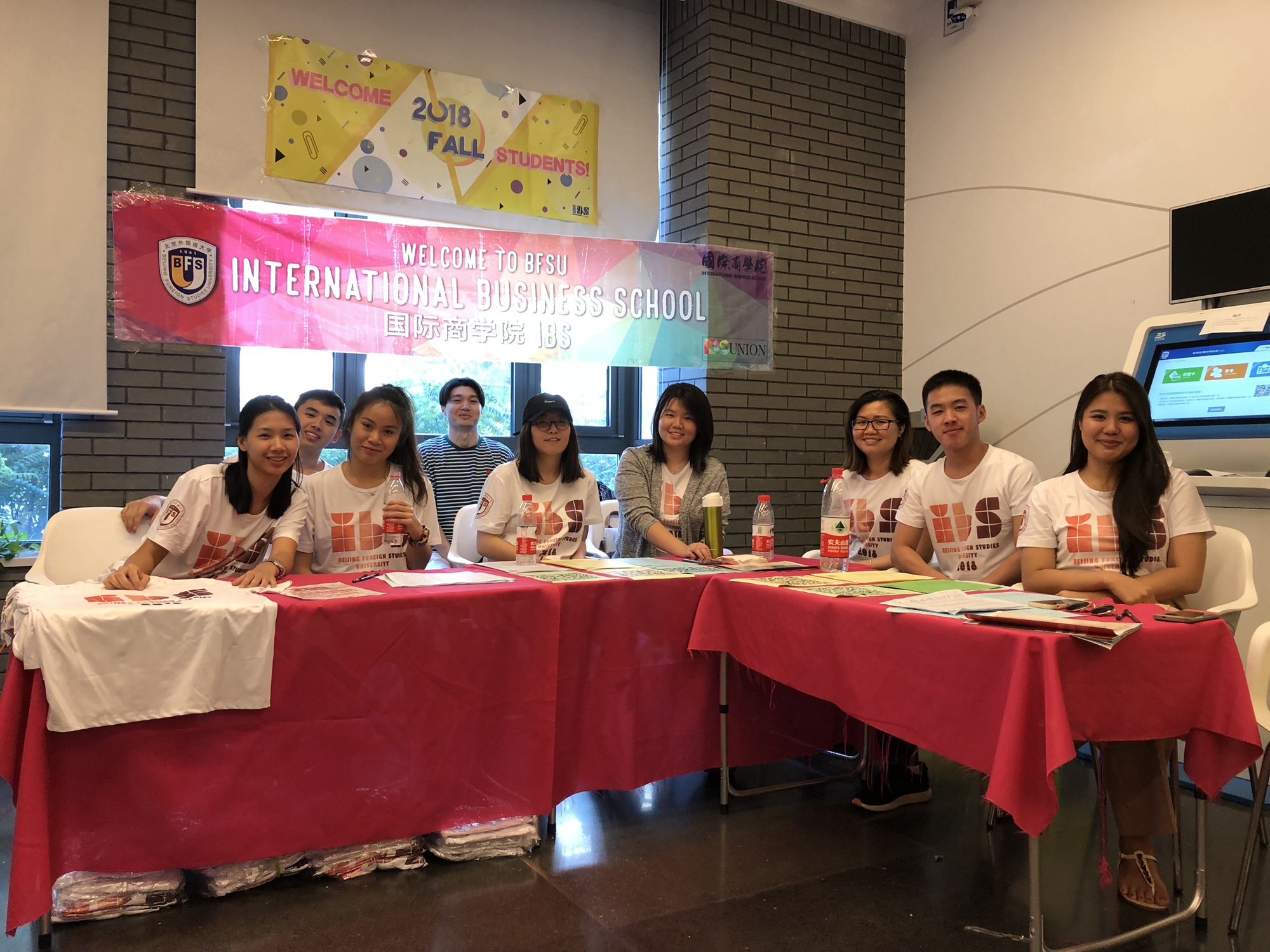 国际商学院留学生会志愿者们在IBS展台上全程协助新生报到工作,帮助部分留学生解决报到注册中遇到的问题。国际商学院为每一位新生准备了入学礼包,包括一个手提袋、一本迎新手册、一本学生纪律手册、一个文件夹、一件印有国际商学院logo的T恤和饮料等物品。