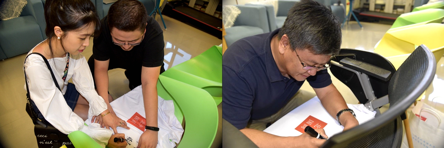 随后校友们在校友会准备的纪念白T上签名留念。