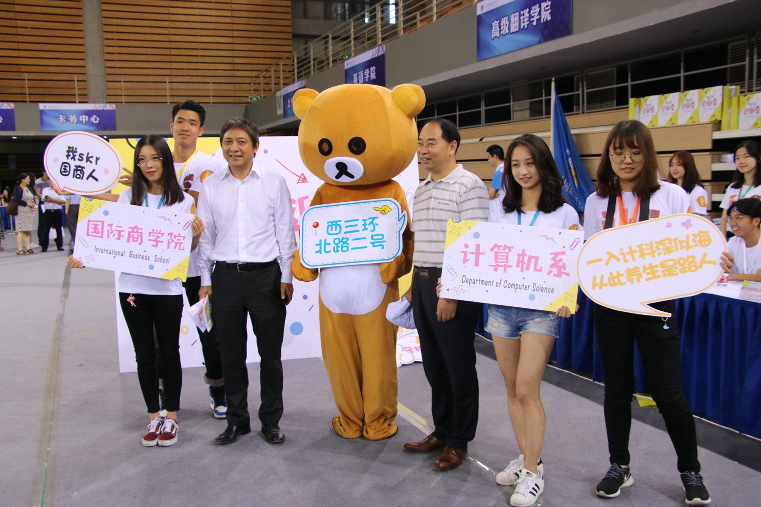 北京外国语大学党委书记王定华,北京外国语大学校长、党委副书记彭龙等校领导及国际商学院院长牛华勇,计算机系主任蔡连侨亲临报到现场,对迎新现场的老师与学生表示亲切慰问,并询问报到工作的开展情况。