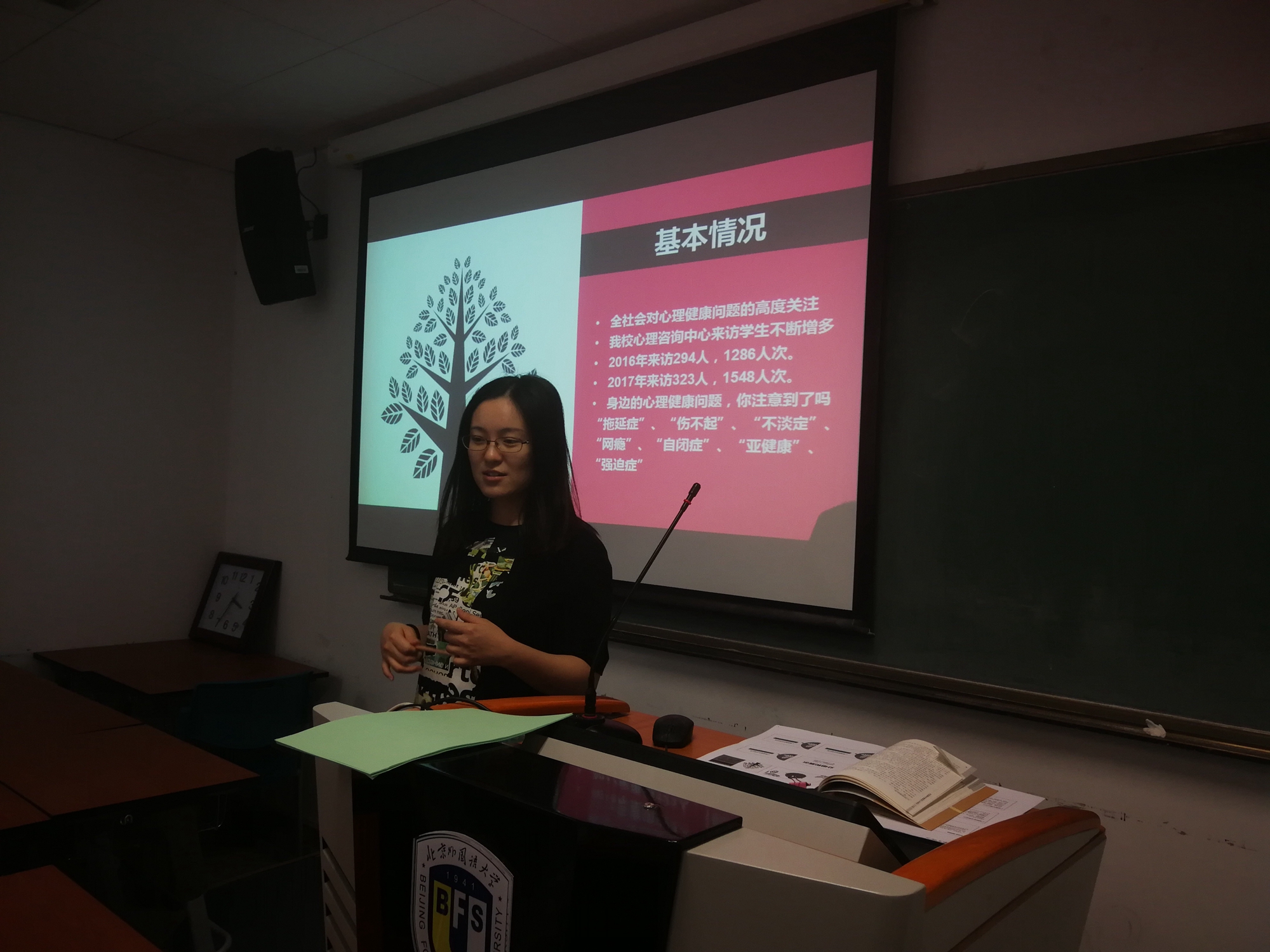 讲座最后,李一可向同学们介绍识别抑郁症及心理危机干预的方法,旨在让同学们今后能运用所学知识及时有效地帮助和关心周围同学。
