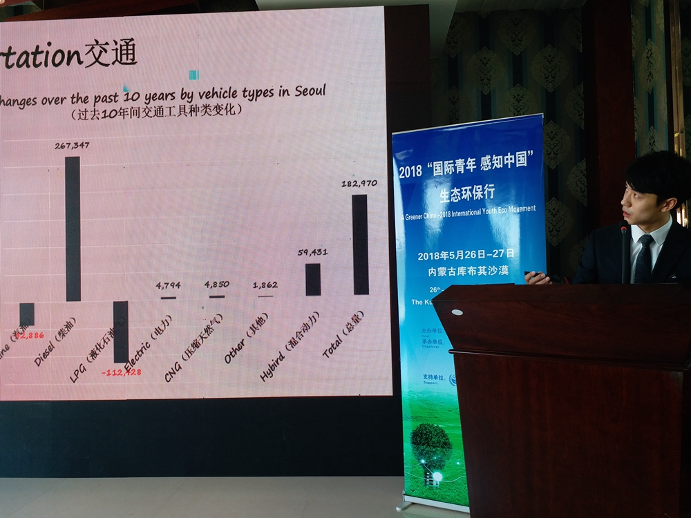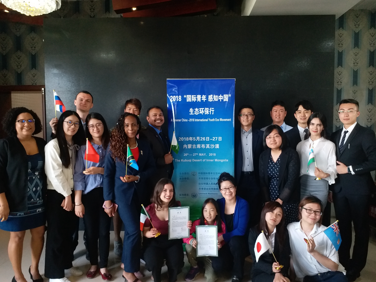 5月26日、27日,在内蒙古鄂尔多斯达拉特旗召开由中国国际青年交流中心主办的2018“国际青年 感知美丽中国”生态环保教育行活动,国际商学院韩国留学生朴相禹、马来西亚留学生林子觉、斐济留学生潘丽晶作为北京外国语大学代表参加活动,并在国际青年环境大会中围绕“人类命运共同体-世界青年的蓝天畅想”进行主旨发言。