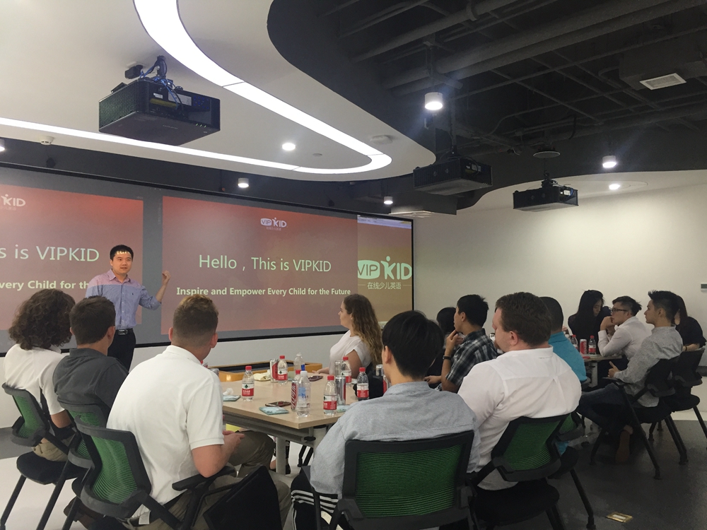 5月24日,同学们参观了VIPKID总部,VIPKID专注于4-12岁在线少儿英语教育的领导品牌,以“科技,让教育更人性化”为主旨,让孩子爱上学英语,让孩子想说敢说英语。同学们对这样新兴的教育方式很感兴趣,在答疑环节提出很多感兴趣问题,VIPKID CEO助理徐喆对每一个学生提出的问题都作出了详细的解答,使同学们对中国的互联网+教育行业有了更深的理解。
