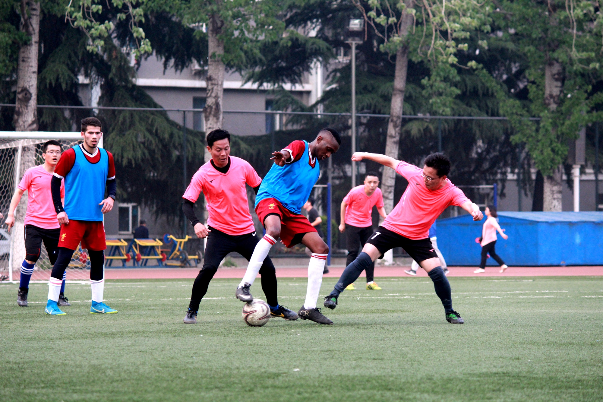 4月18日下午16:40,“北外杯”足球赛决赛在操场举行。国商队以5:1大胜教工队,夺得冠军,实现四连冠。