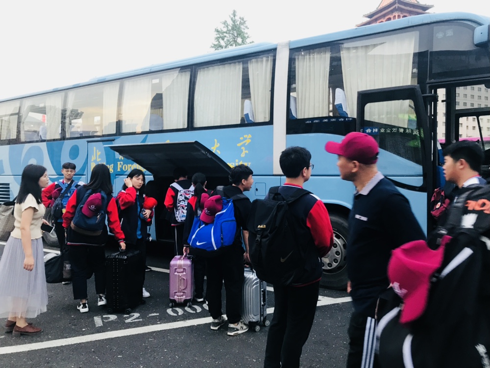 时值春夏之交,国际商学院特别邀请湖南新翰高级中学国际精英班学生赴北外进行为期四天的学习交流,以充分体验大学课堂和生活。5月8日,湖南新翰高级中学到访北京外国语大学,北外校车于北京西站迎接了访学团。同学们身穿统一校服,在三名高中老师的带领下有序出站、上车、前往北外,正式开始访学之行。