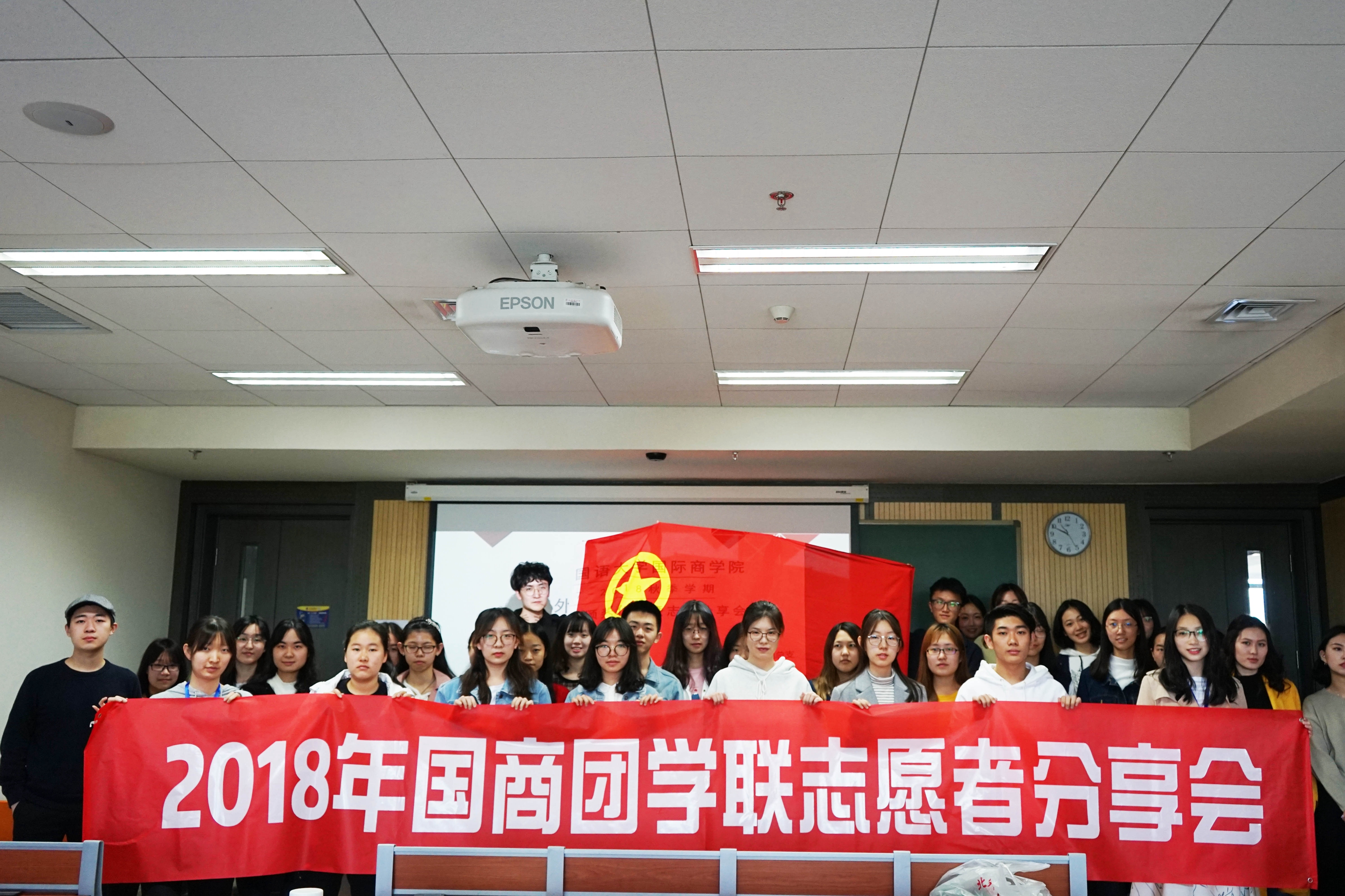 4月15日,国商团学联举行了2018年国商志愿分享会。美新路等多个项目的志愿者以及大一各班团支书参与了本次活动。国商团总支书记、2016级本科生辅导员胡伟韬、2017级本科生辅导员邓会荟出席了本次分享会。