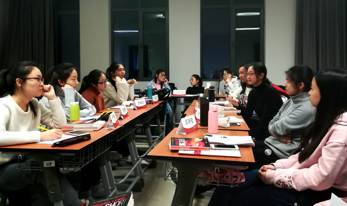 1月12日,国际商学院2017级国际经济与贸易实验班在国际大厦335教室举办《The Big Short》读书会。国际商学院教师Carol Cui和2017级国贸一班全体学生参加了读书会。读书会的主题为对《The Big Short》的研读,思考与交流。读书会内容主要包括《The Big Short》回顾和问题讨论。