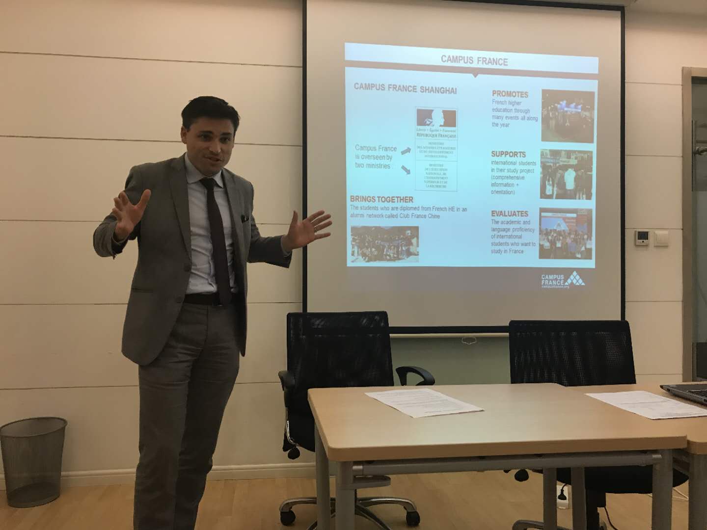 1月18日,同学们前往上海,参观了法国中国商会,了解法国工商会的相关高校与企业,法国公司在中国的运营模式,以及未来的发展趋势。随后参观了法国高教署,了解了高教署的发展历程,更是获取了很多实用知识:如法国留学签证办理方法、留学过程中应该注意的问题等,为学生日后的留学或交流交换提供了便利。