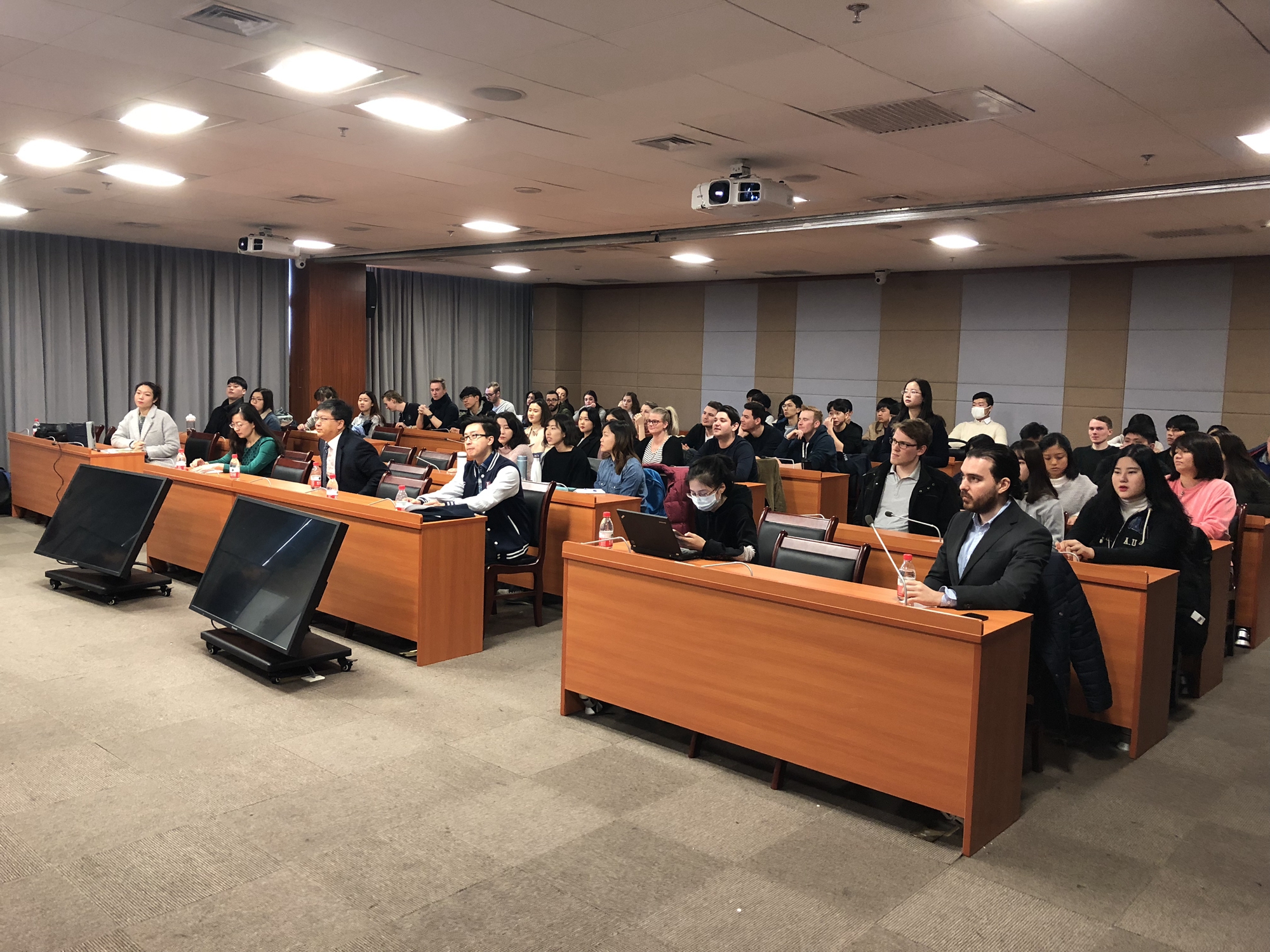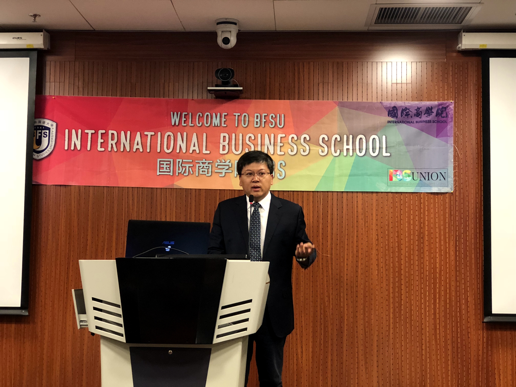 3月5日上午,北京外国语大学国际商学院在国际大厦417教室为全体2018级春季留学生新生举办了新生见面会。国际商学院院长牛华勇,国际商学院院长助理、行政办公室主任、党总支办公室主任崔校宁,学生事务办公室主任李文斌,教师代表Javier等出席新生见面会。活动由国际商学院留学生协会主席Justin主持。
