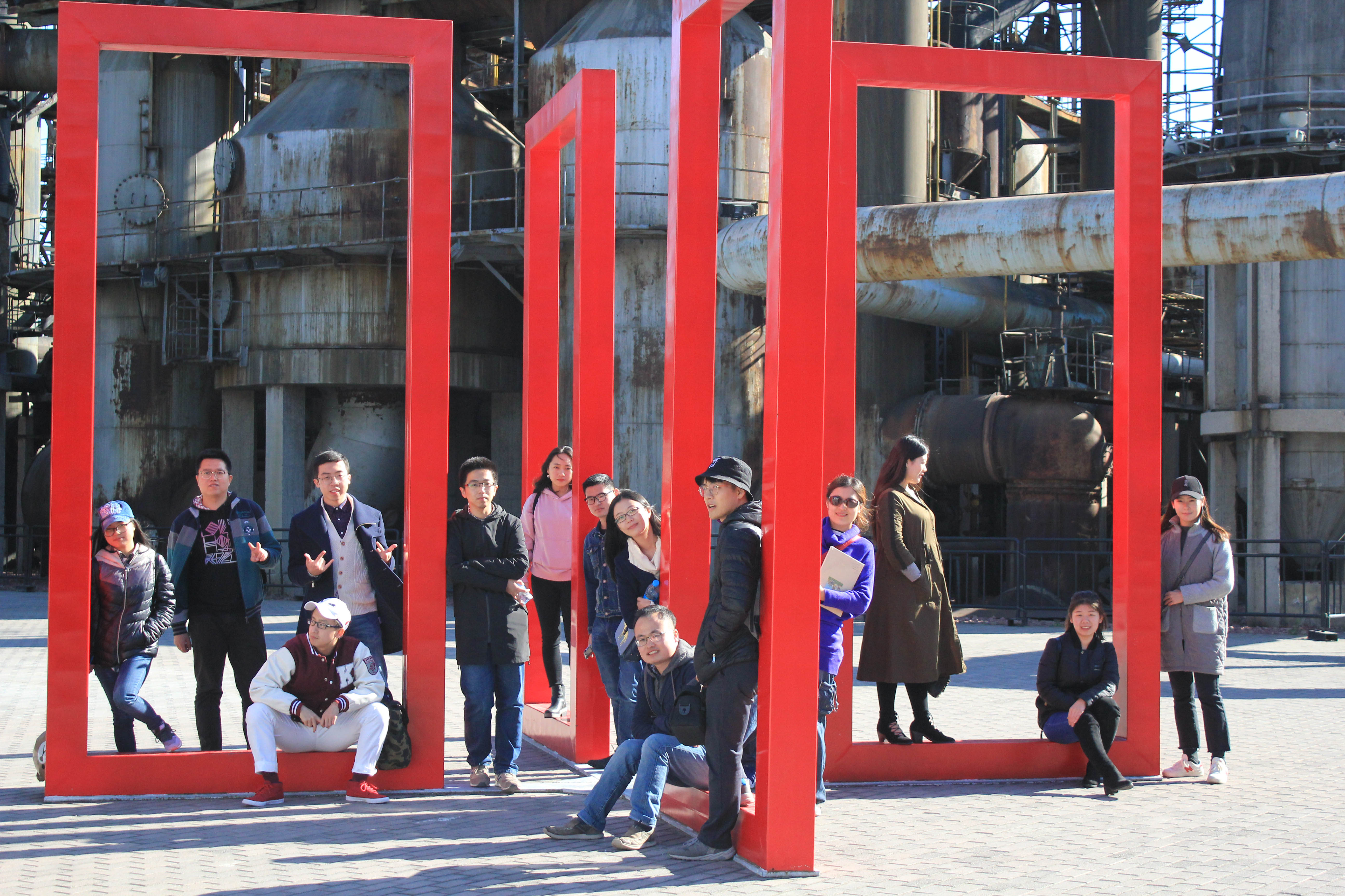 在798艺术区,学生们穿梭于艺术和工业之间,体会精致与粗狂并存的具有国际化色彩的“SOHO式艺术聚落”和“LOFT生活方式”,感受了生活与精神的冲撞。同时,斑驳的红砖瓦墙,错落有致的工业厂房,纵横交错的管道,墙壁还保留着各个时代的标语,让同学领略了历史与现实、工业与艺术在798艺术区完美的结合。