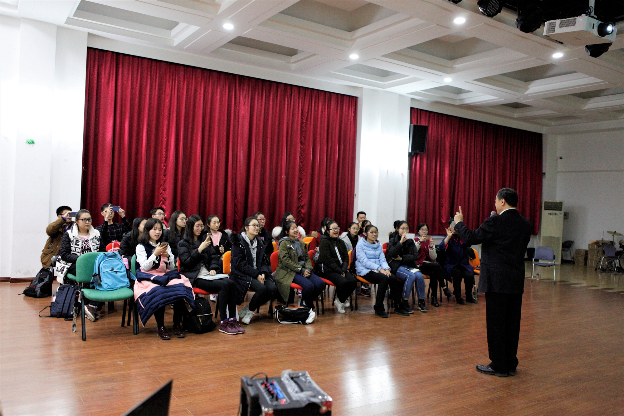 11月24日星期五,国际商学院2017级国际经济与贸易实验班京剧艺术鉴赏课程在学生中心5层多功能厅举办。北京外国语大学艺术研究院院长孙萍、中国国家京剧院一级演员叶金森先生和2017级国际经济与贸易实验班全体同学参加课程。