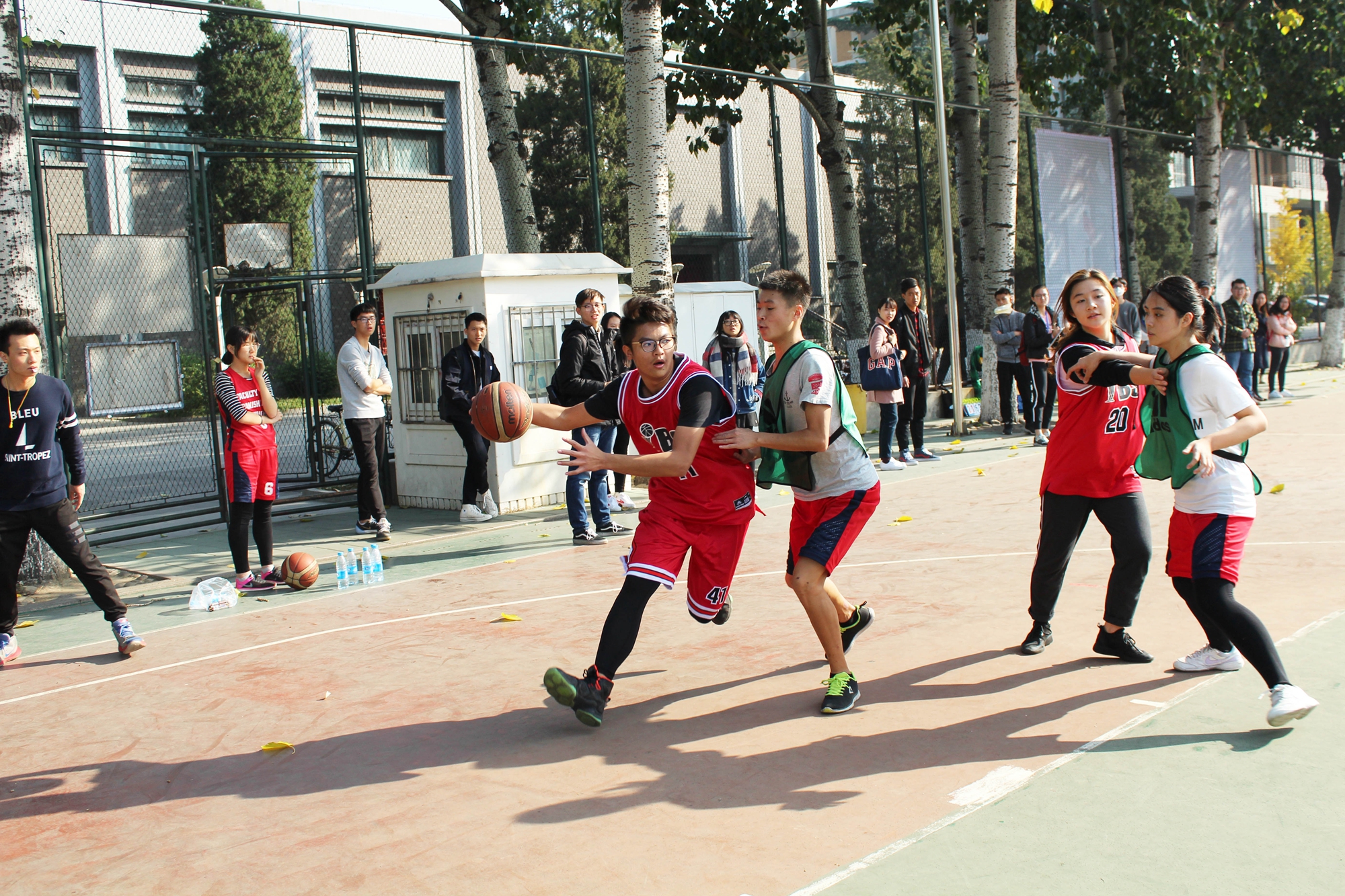 11月2日中午12:30,国际商学院新生篮球队和西葡语系新生篮球队在5号篮球场上进行了“五四杯”新生混篮半决赛。
