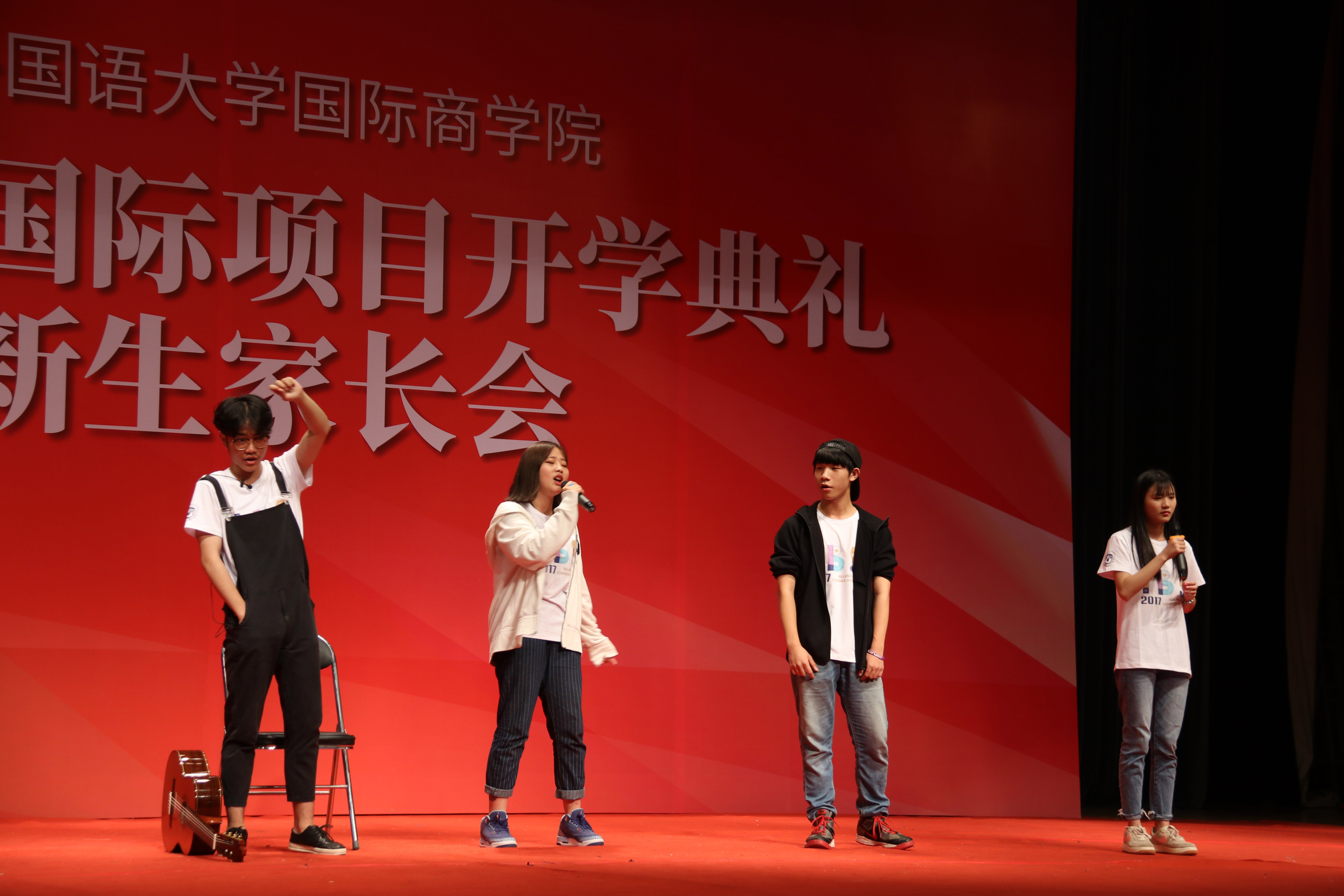 现场首先播放了欢迎视频,向新生表示了热烈的祝贺和欢迎,新生们通过表演节目展示国际班学生的风貌。由刘鹏首先致欢迎辞。