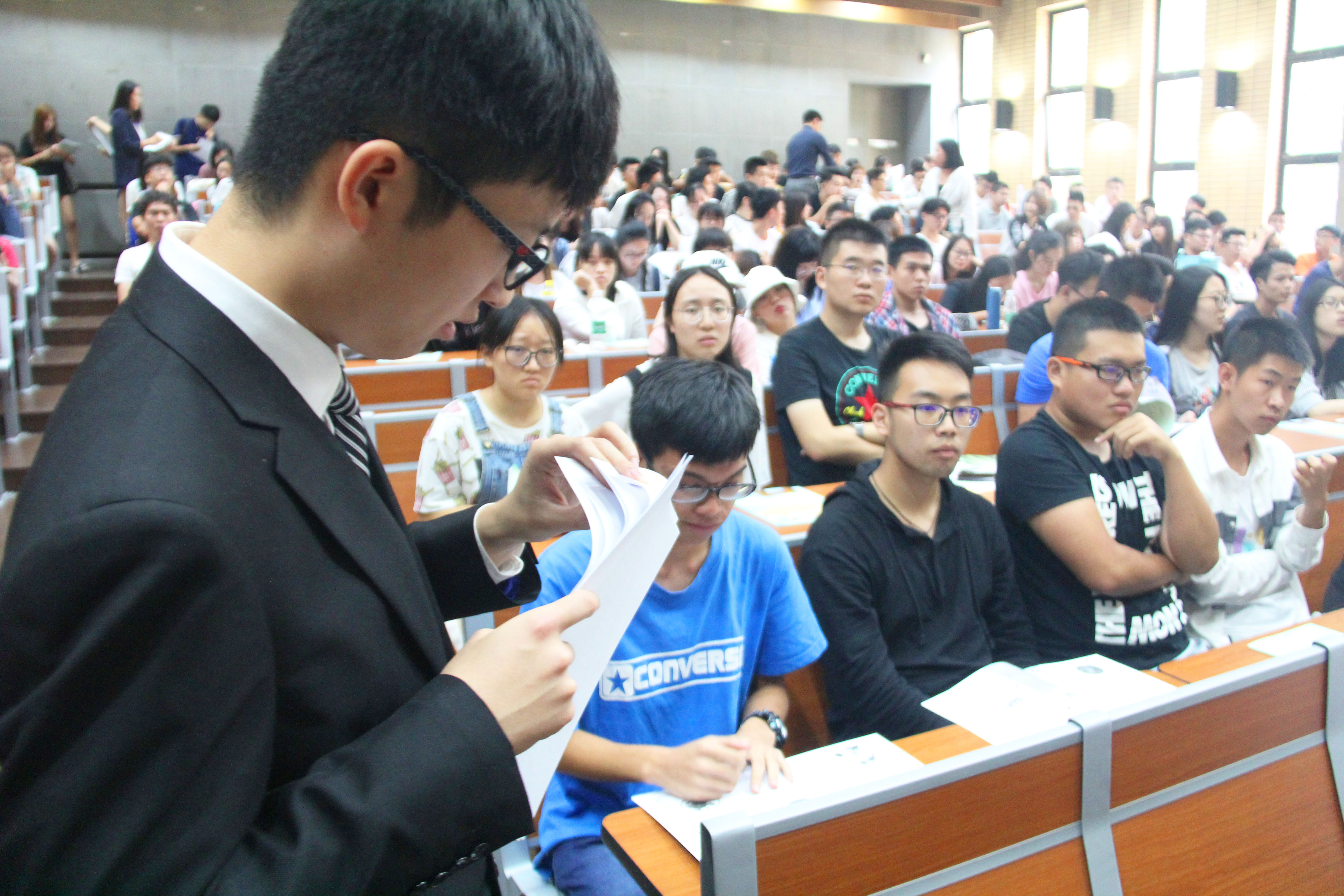 9月4日下午,国际商学院2017级国际部新生于逸夫楼一阶参加2017级经济管理国际项目课程说明会和国际商学院团学联国际部进行招新宣讲。