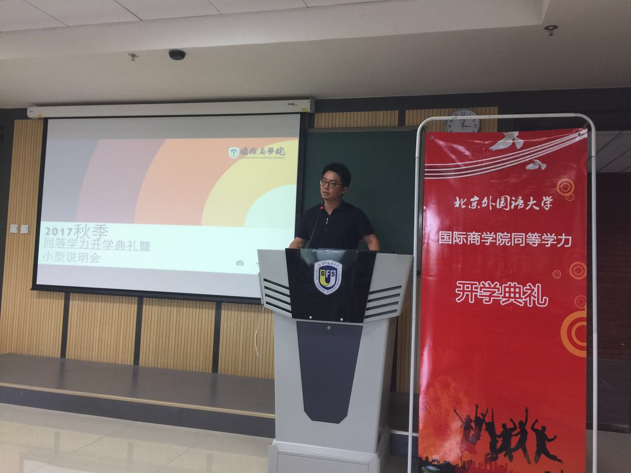 9月10日,北京外国语大学国际商学院2017级同等学力秋季班在北外西校区综合楼309举办开学典礼暨小型说明会。国际商学院副院长孙文莉、EDP中心主任于兹志、项目主管段东明、段海波、以及来自全国各地的在职研究生参加了本次活动。