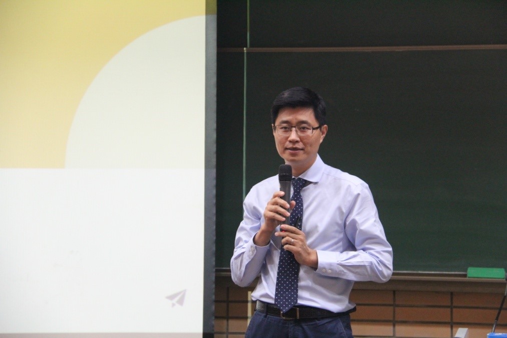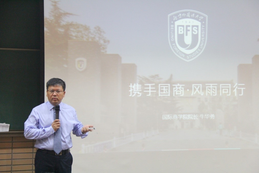 牛华勇介绍国际商学院发展历程及国商文化,并简要介绍国际商学院教学体系、师资、培养目标等。