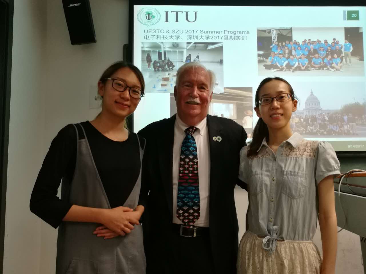 下午2点,布莱恩和邵巍在综合楼为我校师生做了题为“硅谷创新教育模式”的演讲,邵巍介绍了ITU的建校历史,并从学生、师资、设施、管理等五个方面介绍了ITU的独特优势,布莱恩介绍了ITU与实践高度结合的创新教育模式,展示了ITU强大的师资队伍和同学们丰富的实践机会。