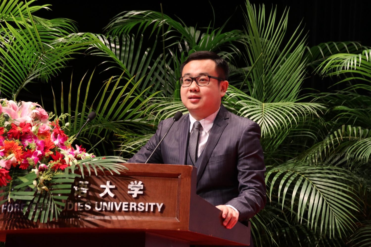 国际商学院2003级校友朱希致辞,分享了大学四年以及工作十年的心得和建议。(校友朱希在2017级新生开学典礼上的发言)