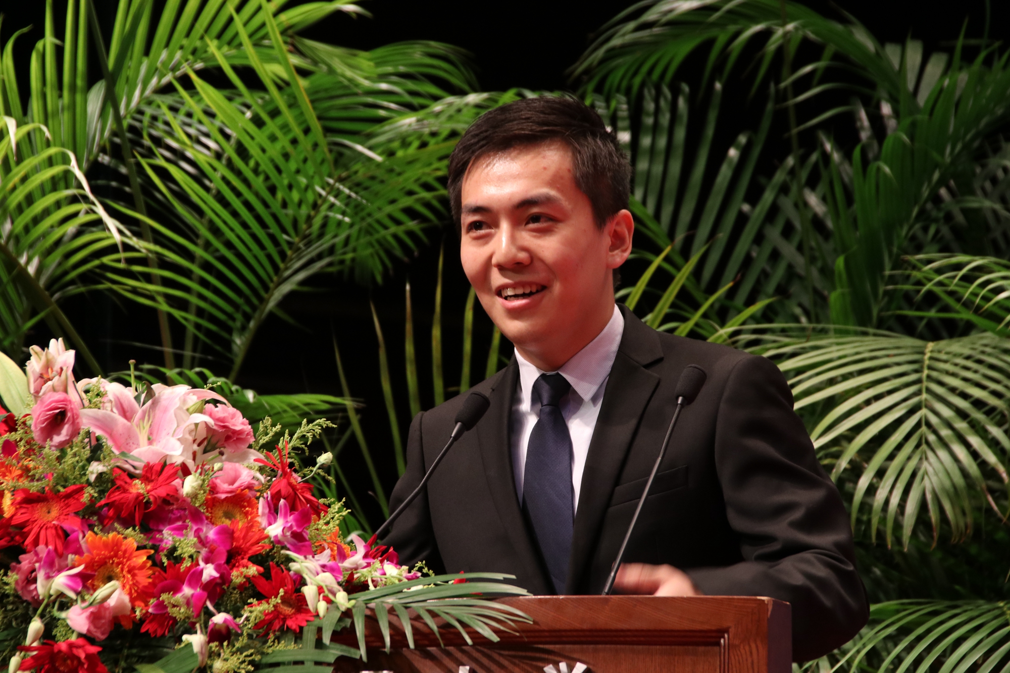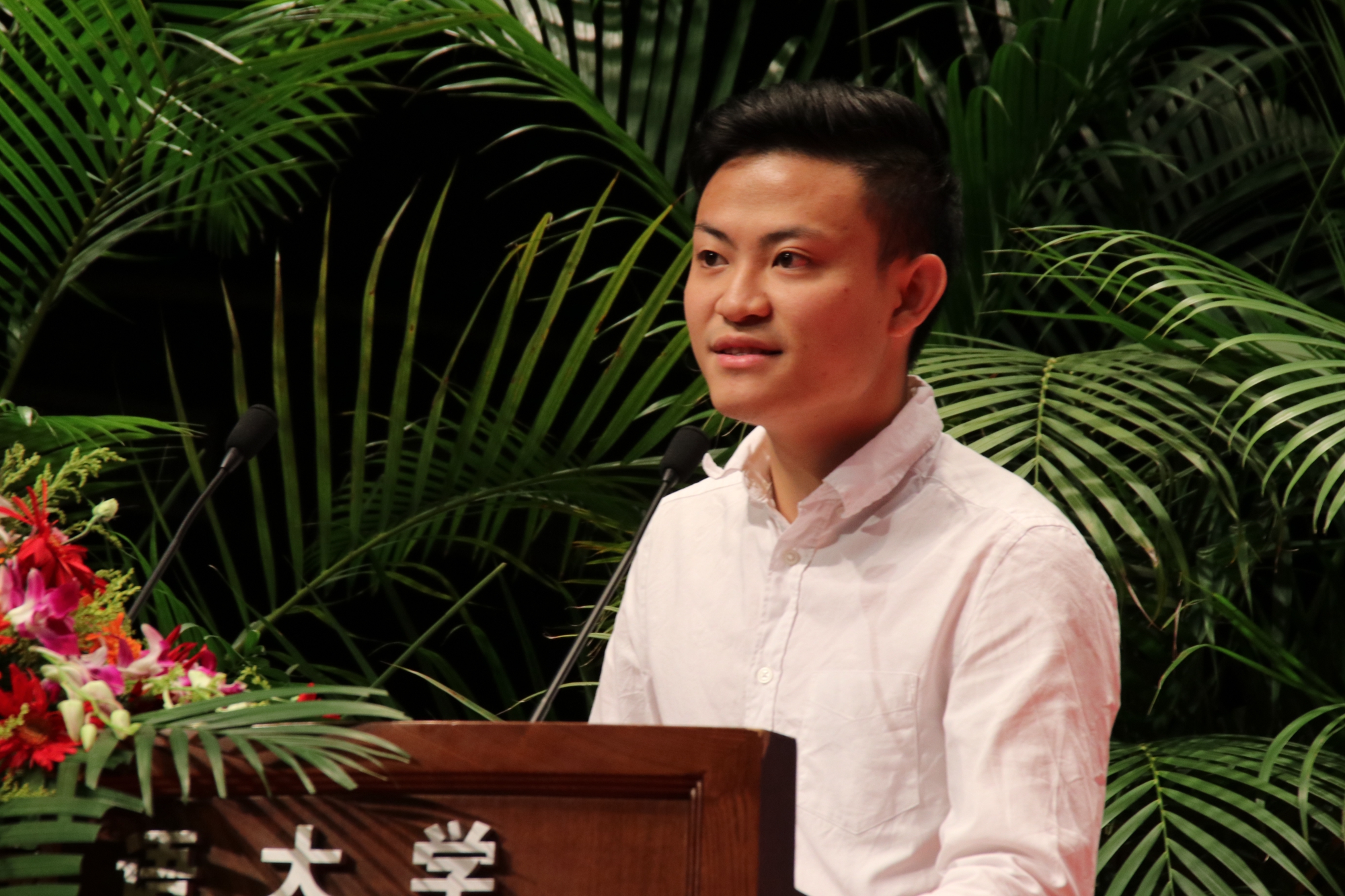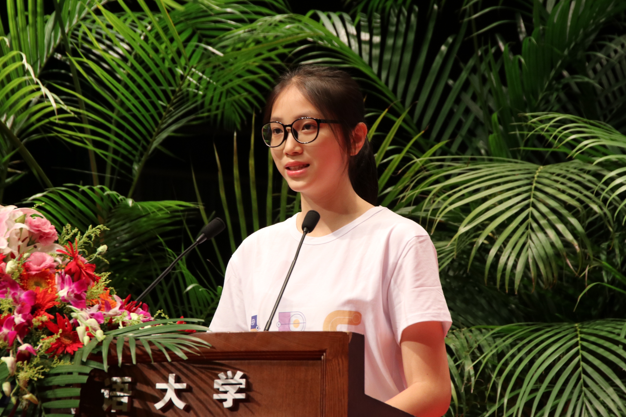 国际商学院2014级学生代表朱从冉发言,分享了关于成绩、多样化、勇气的观念,鼓励新生们全身心投入短暂的四年大学生活。随后,本科生新生代表李敏琦、研究生新生代表Jonathan分别发言。