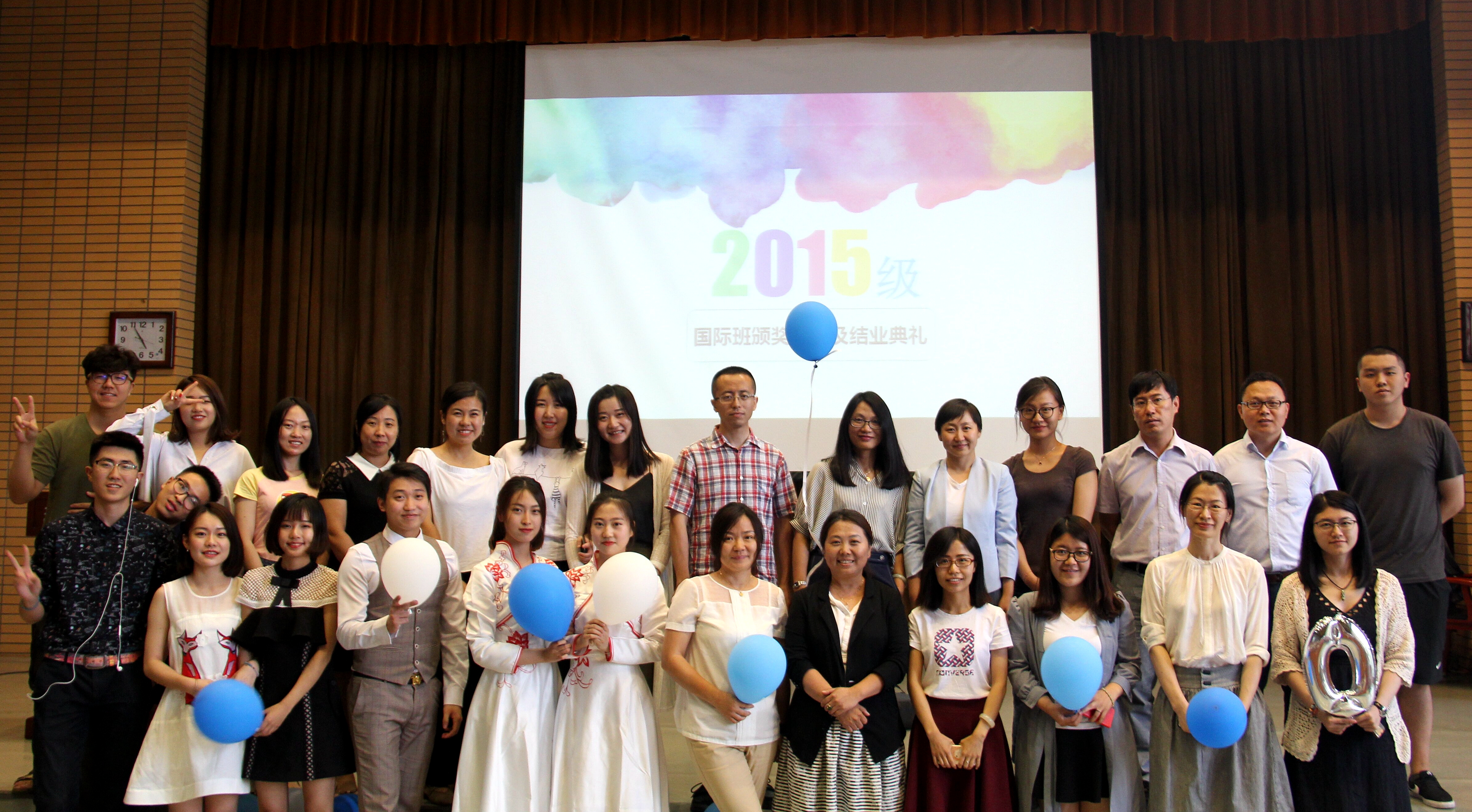 5月31日下午,2015级国际商学院国际班优秀学生颁奖仪式暨结业典礼在逸夫楼三阶举行。国际商学院院长牛华勇、党总支书记刘鹏、学生事务办公室主任李文斌、国际办公室主任章严平、教学办公室副主任蔡琳、招生办公室主任杨文娟等老师、以及2015级国际班全体学生参加了典礼。