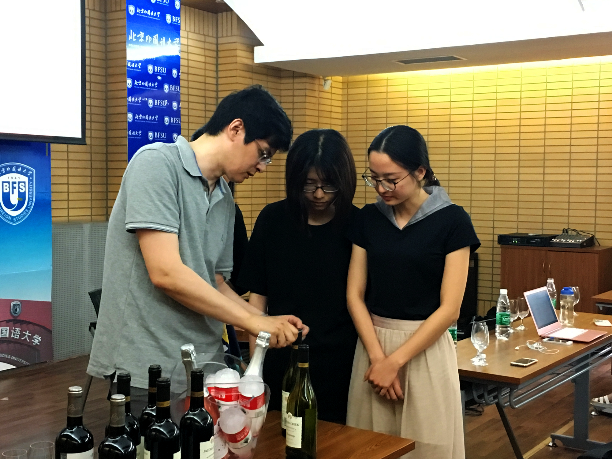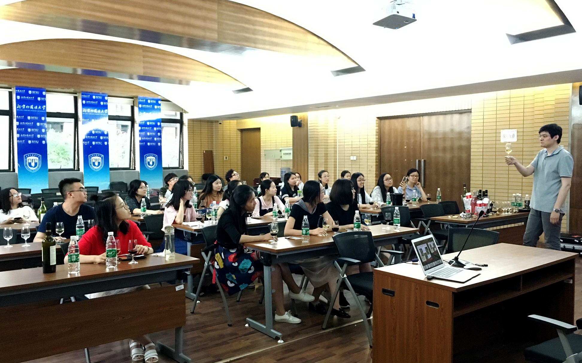 5月31日下午,国际商学院在逸夫楼一层会议厅举办第一期初级葡萄酒品酒师课程。中粮集团全资子公司北方京糖洋酒销售有限公司宋磊先生为本次课程主讲嘉宾。2016级国际经济与贸易实验班同学参加本次活动。