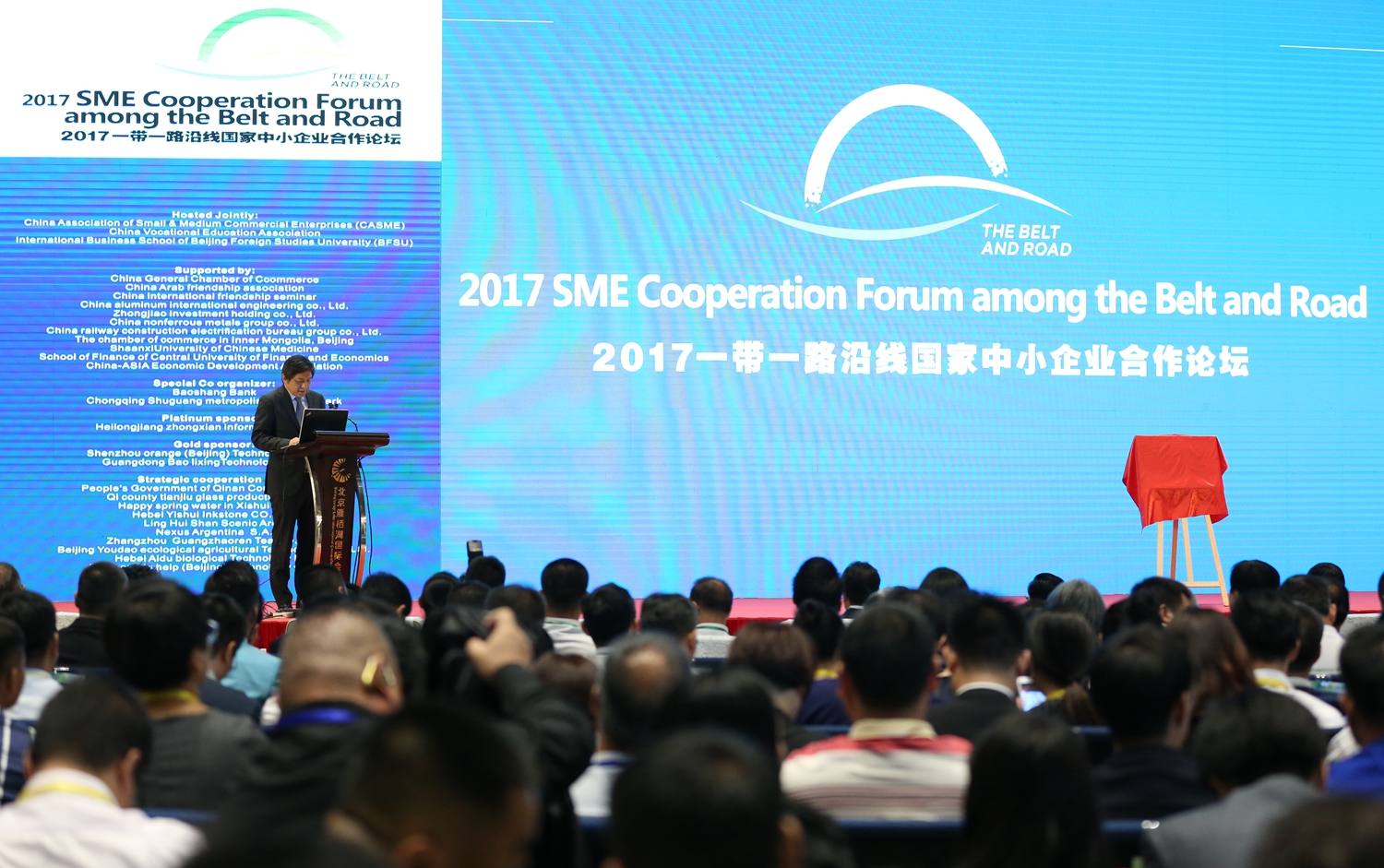 6月14日,“2017一带一路沿线国家中小企业合作论坛”在北京怀柔区雁栖湖国际会展中心举行。本次论坛由北京外国语大学国际商学院、中国中小商业企业协会、中华职业教育社共同主办。来自巴基斯坦、匈牙利、巴林王国、菲律宾、柬埔寨、蒙古、纳米比亚、尼泊尔、老挝、俄罗斯、塞尔维亚、意大利、芬兰、多米尼加等国家和中国有关部委、高校、央企、中小企业、商协会、新闻媒体、地方政府的嘉宾代表500多人出席会议。有关国际组织,芬兰就业经济部长雷恩和墨西哥驻华大使馆均向本次论坛召开发来贺电。