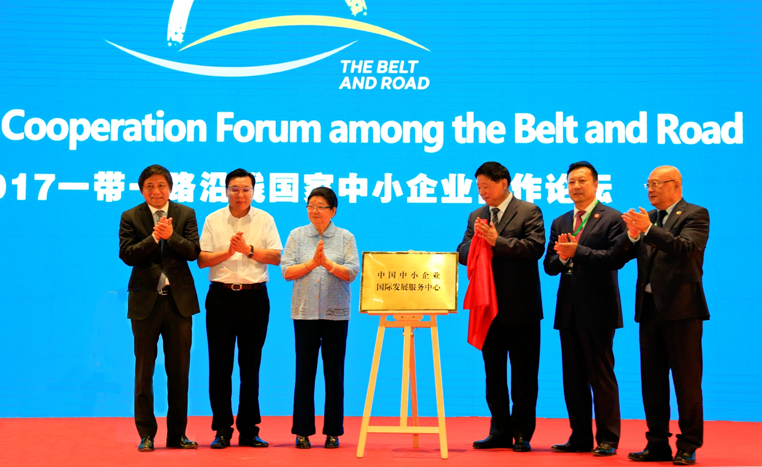 开幕式上进行了中国中小企业国际发展服务中心揭牌成立仪式,由彭龙,王民、顾秀莲、叶小文、李镇西和刘恩嘉共同揭牌。