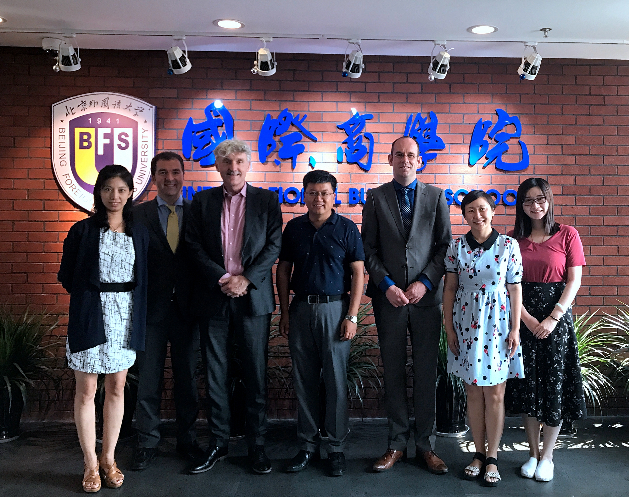 汉斯大学副校长Rob Verhofstad、市场管理学院院长Paul Ganzeboom、商学院国际合作负责人Diedericht Baker分别介绍了汉斯大学、、市场管理学院、商学院的基本情况,重点强调了汉斯大学的国际化发展战略,以及在创新创业领域的特色专业与课程设置等。他们希望与北外深化合作,进一步推动师生交流与科研合作,并且期待通过加入丝绸之路商学院联盟,能够与更多一带一路沿线国家建立长期的合作交流。随后,双方还就共同关心的科研合作可能性及其他创新型合作模式进行了探讨交流。