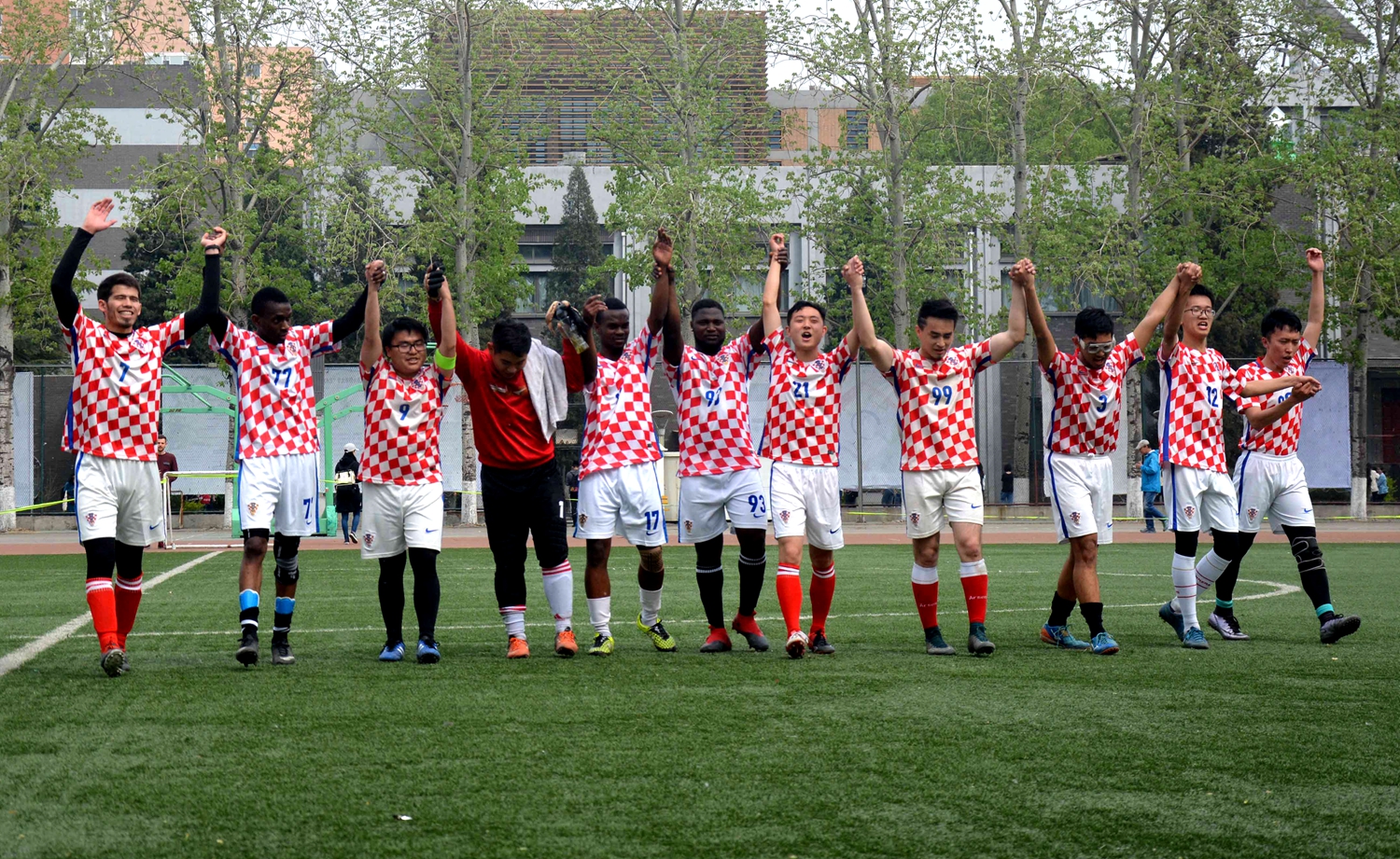 4月10日下午,“北外杯”足球赛在操场如期进行。国际商学院足球队以6:2战胜国际法,晋级决赛。