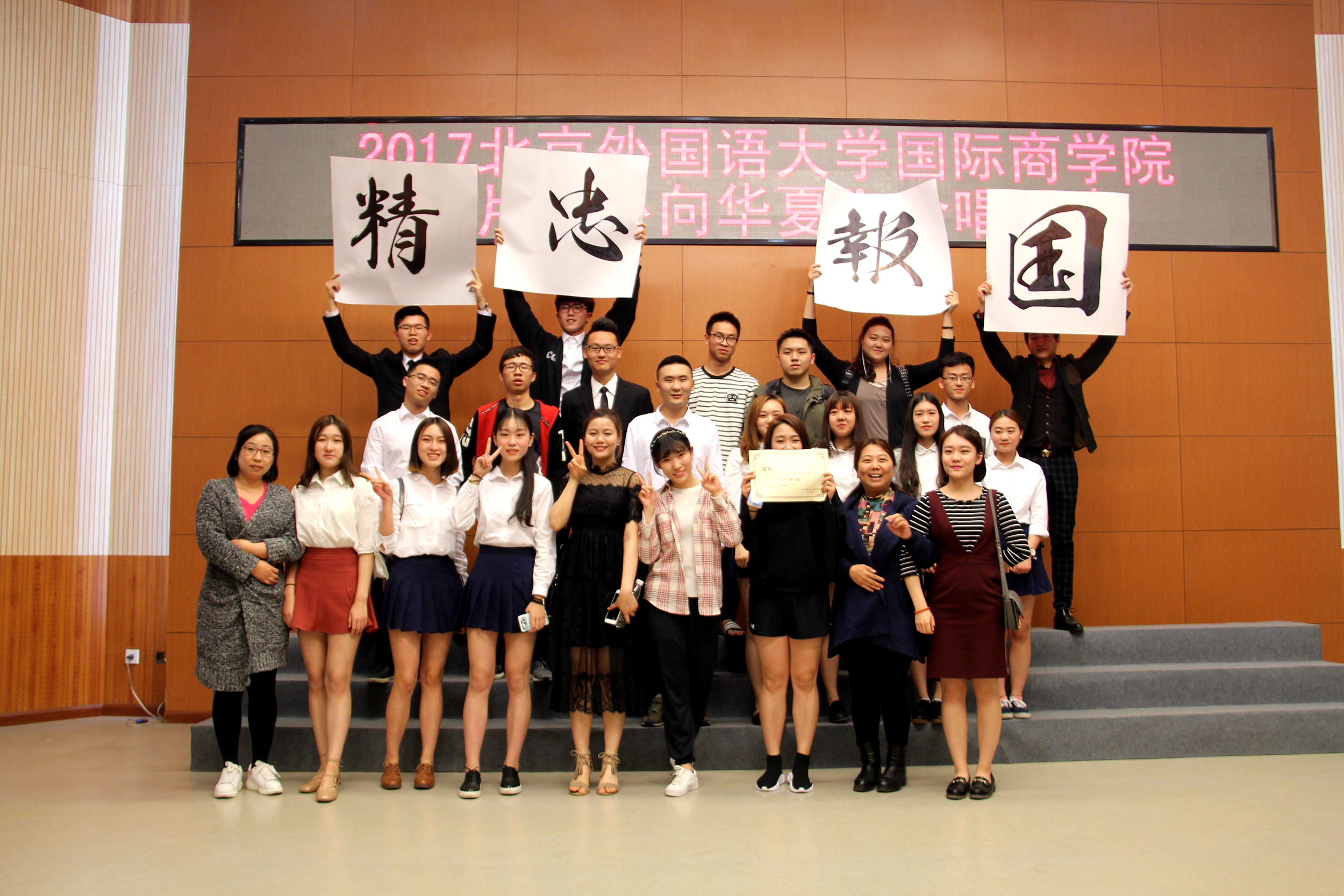 4月14日晚,由国商团学联文艺部主办的“一片红心向华夏”大合唱比赛在阿语楼国会厅成功举行,参加此次合唱比赛的有11个2016级国际商学院的班级,以及北外合唱团团长、韩国又松大学学生等嘉宾。