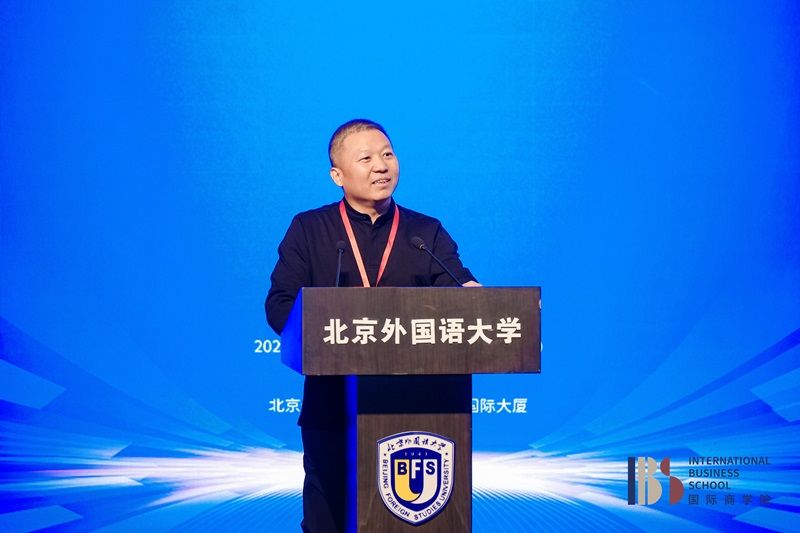 产业导师代表、用友网络科技股份有限公司副总裁张月强以“从产业到产业导师的转变与感想”为主题发言。他回顾了从推动用友集团成为北外国商实践基地,到参与指导学生论文、学位点评估及企业出海案例评审的历程,高度肯定了国商师生的专业素养与扎实学风。张月强秉持“成人达己”的理念,积极推动学生就业,整合企业资源助力学生成长,展现了产业导师的责任与担当。