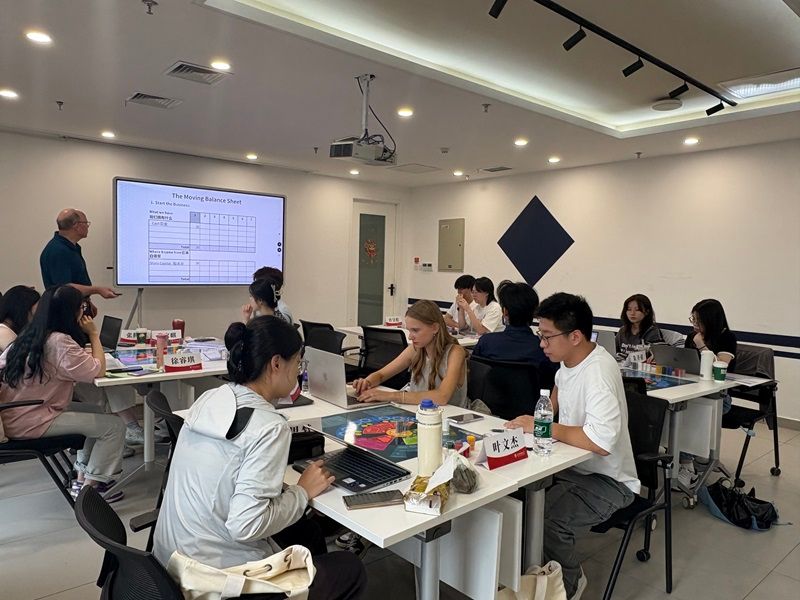 7月29日,在资深商赛导师Mark老师的带领下,学生们分组参与模拟企业运营,在限定时间内从产品定位、财务决策到营销策略等环节全程操盘,围绕企业战略制定与市场竞争展开激烈比拼。