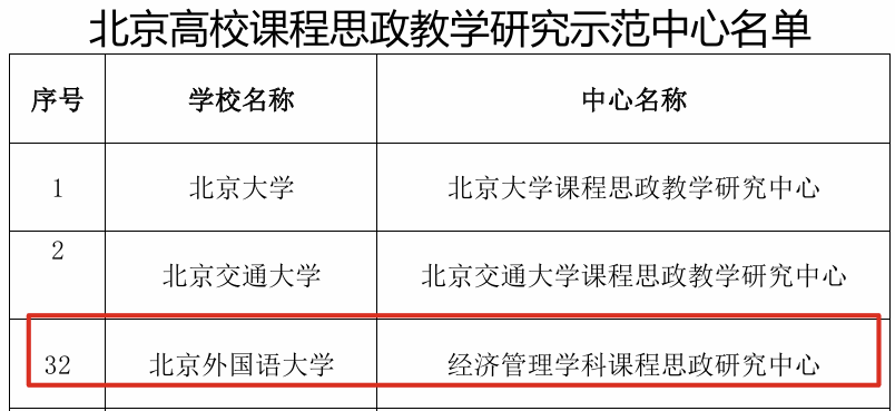 根据北京市教育委员会公布的2025年北京高校课程思政相关项目遴选结果,我校经济管理学科课程思政研究中心获批“北京高校课程思政教学研究示范中心”。