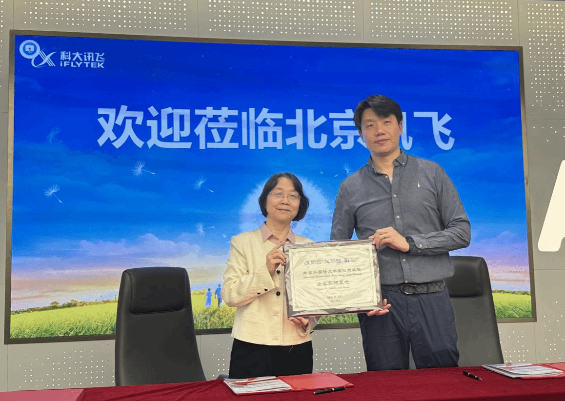 双方共同签署合作备忘录,并举行了“北京外国语大学国际商学院企业实践基地”授牌仪式。