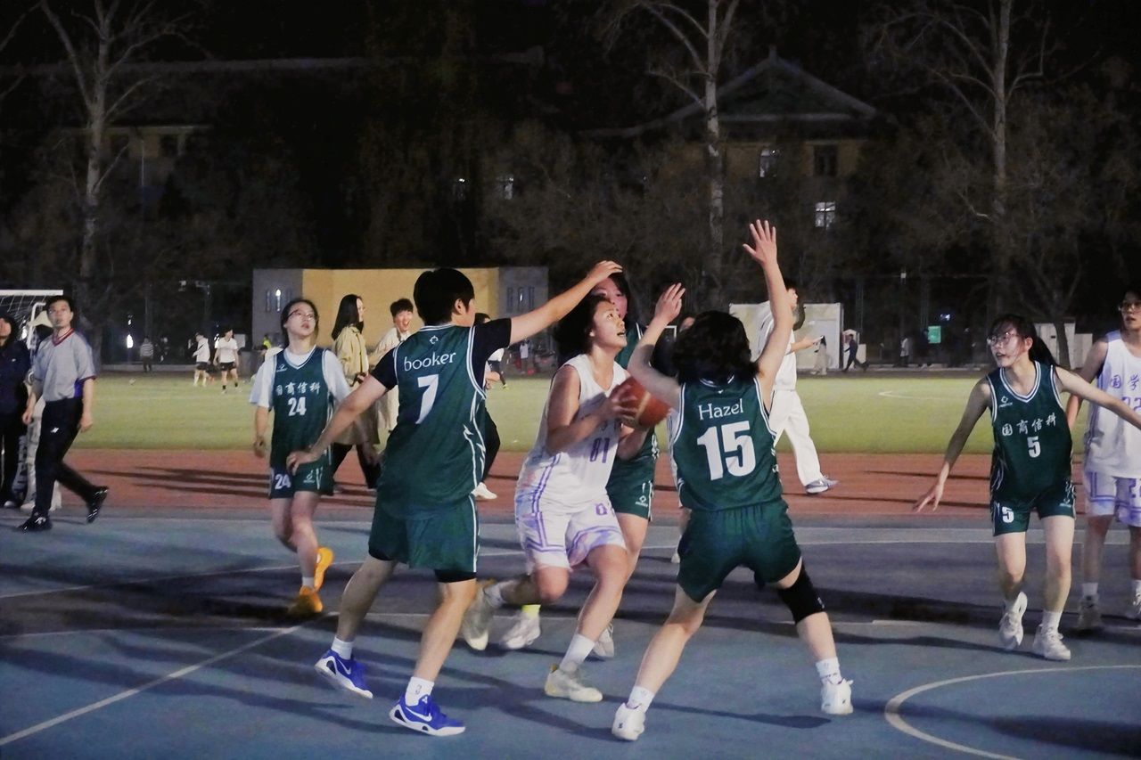 进入排位赛,国商女篮火力全开、稳步前行。对阵法学院的比赛中,队员们始终保持高度专注,每一次传球、每一次投篮都凝聚着团队的默契与坚持,尽管最终以16:27不敌对手,但始终保持着顽强的比赛态度,不言放弃。4月8日下午,本届“北外杯”女篮5-6名决赛正式打响,国商女篮对阵国关学院代表队。开场哨响,国商女篮队员迅速抢占先机,以一记漂亮的投篮拿下本场首球,迅速掌握赛场主动权。国关学院不甘示弱,加强防守强度,双方交替得分,赛场气氛持续升温。上半场战罢,国商女篮以明显优势领先。下半场,国商女篮通过稳固的篮板保护与快速反击连续得分,同时利用全场紧逼战术彻底压制对手进攻节奏,单节打出亮眼分差。国关学院虽尝试暂停调整,但未能破解国商女篮的防守压迫。最终,国商女篮以31:9的悬殊比分战胜对手,成功斩获本届“北外杯”女子篮球赛第五名。