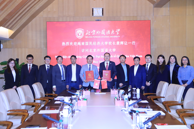 4月13日,应北京外国语大学国际商学院邀请,越南国民经济大学校长裴辉让访问北京外国语大学。北外校长、党委副书记贾文键会见裴辉让一行。