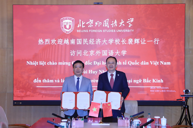 贾文键介绍了北外学科建设、人才培养发展的最新成果,尤其是推动国际化、跨学科、数智化的办学成绩。他强调,中越两国山水相连、人文相通,教育领域合作活跃、成果丰硕,北外矢志不渝推动两国人民深化理解,加强师生交流与学术合作。希望与越南国民经济大学携手推进商学、教育等领域创新项目落地。