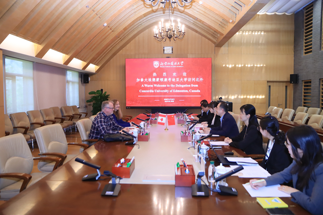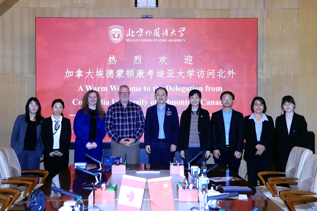 加拿大埃德蒙顿康考迪亚大学教务长兼学术科研副校长银歌,北外国际交流与合作处、国际商学院有关负责同志参加会见。