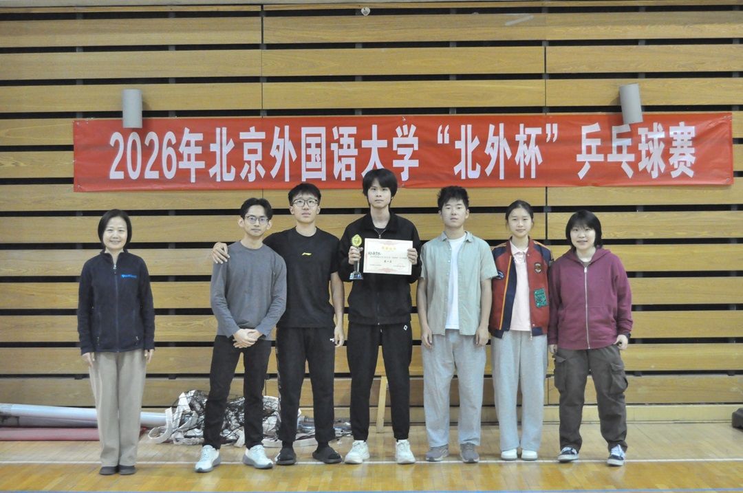 2026年4月20日中午,北京外国语大学“北外杯”乒乓球赛决赛在东校区体育馆二层球类馆正式打响。国际商学院代表队以3:1的比分击败亚洲学院、非洲学院代表队,一路过关斩将,最终捧起冠军奖杯,为本次赛事之旅画上了圆满句号。